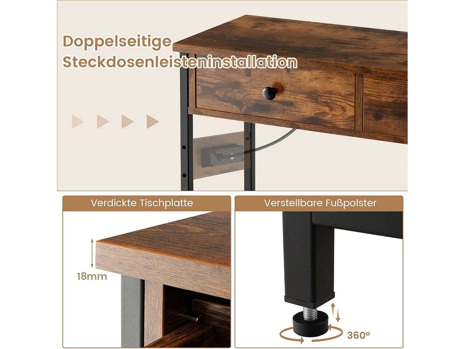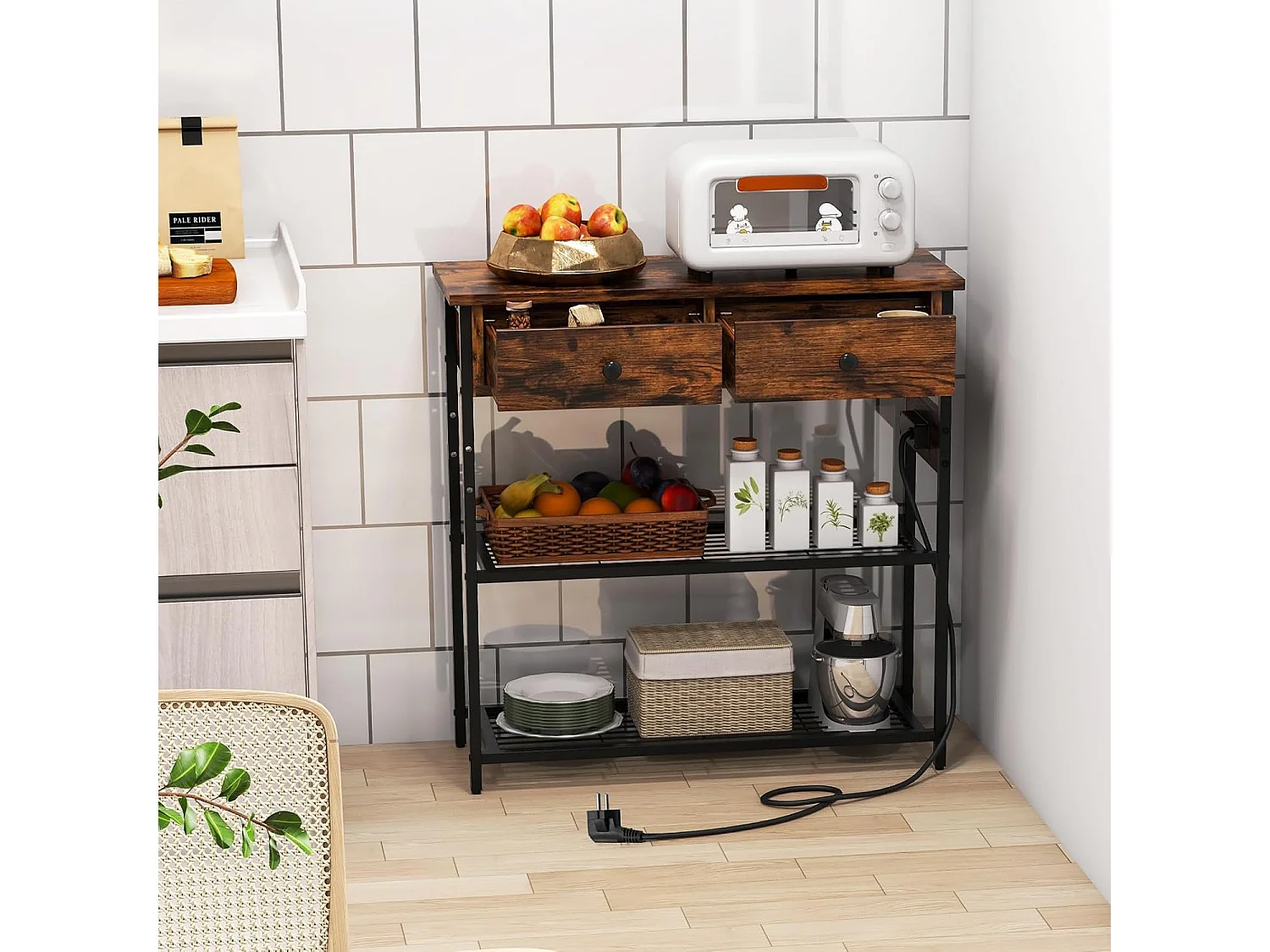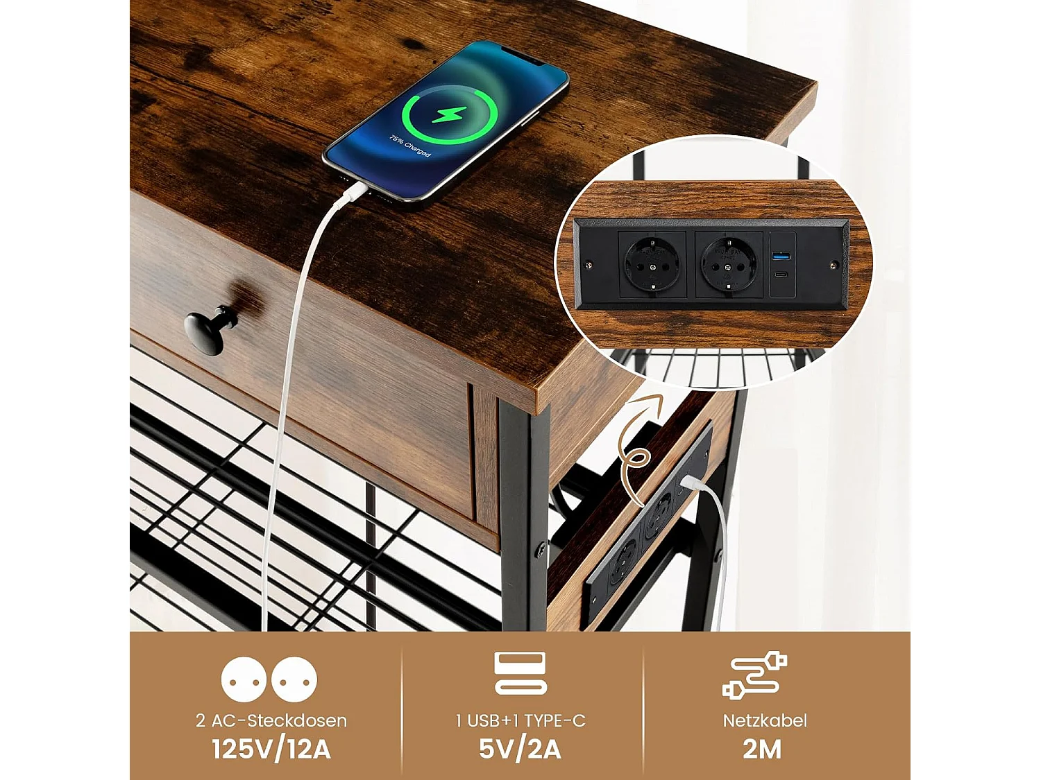 Consoletafel met laadstation, haltafel met 2 laden en 2 metalen roosterplanken, met stopcontacten en USB & TypeC-aansluitingen, bijzettafel vintage (bruin)VH33943