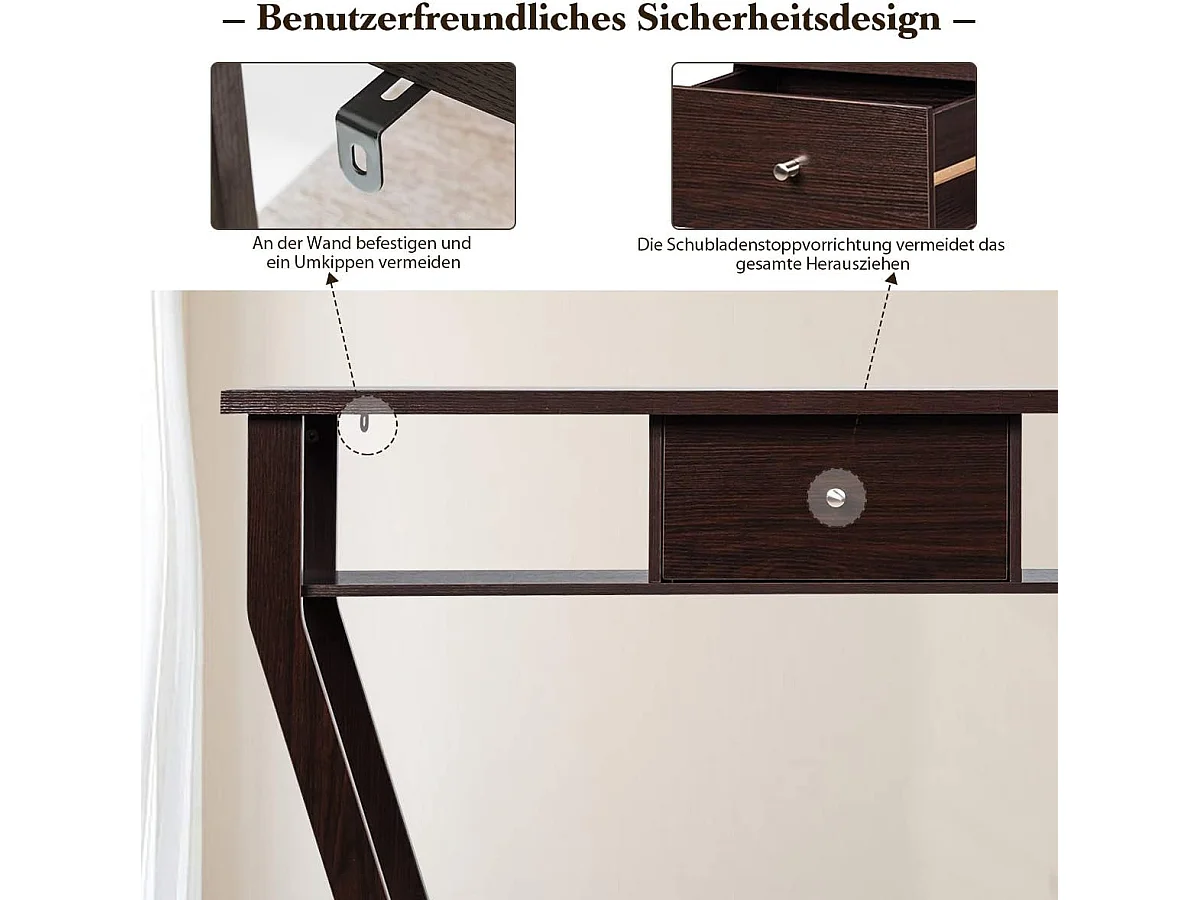 100 cm consoletafel met 2 laden, 3 niveaus, gangtafel van hout, bijzettafel met metalen frame, met kantelbeveiliging (vintage)VH32640