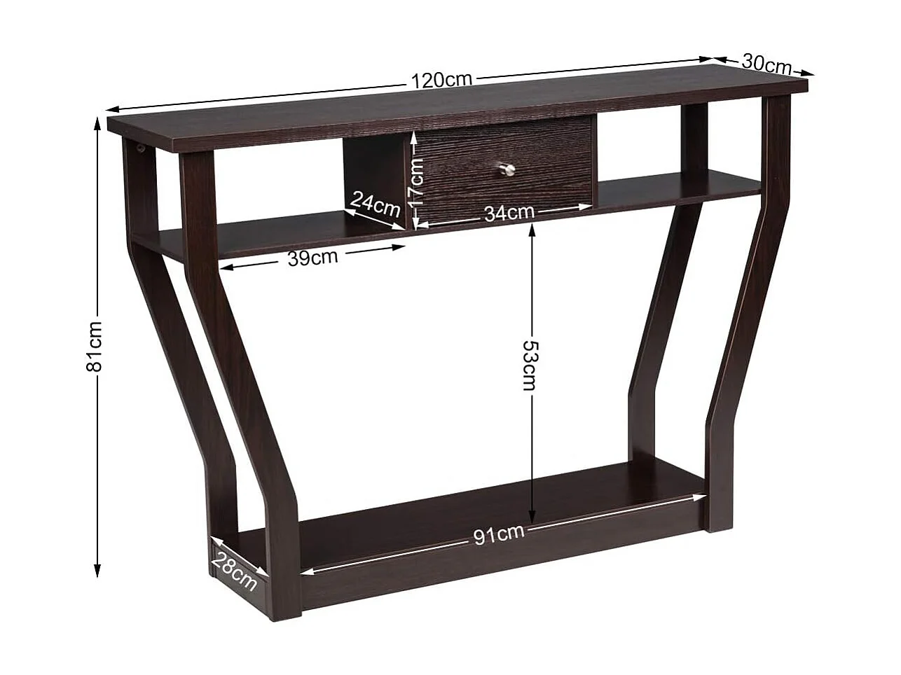 Consoletafel met lade en plank, haltafel van hout, entreetafel, bijzettafel voor ingang, woonkamer slaapkamer 120 x 30 x 81 cm (bruin)TI82413