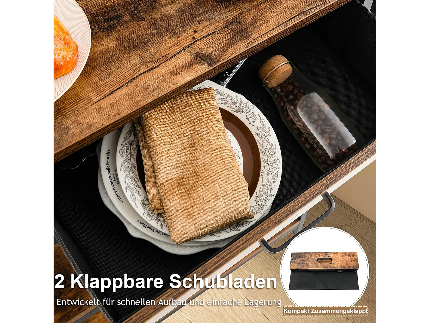 Consoletafel met laadstation, haltafel met 2 laden en 2 metalen roosterplanken, met stopcontacten en USB & TypeC-aansluitingen, bijzettafel vintage (bruin)VH33943