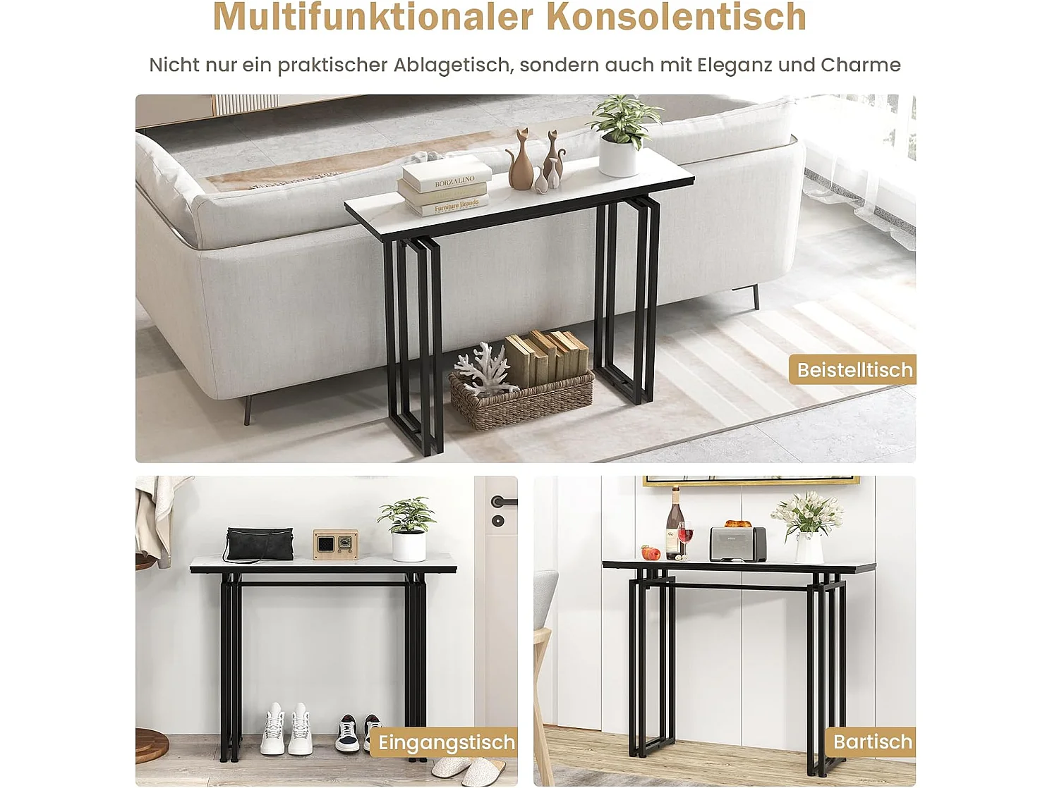 Consoletafel, bijzettafel, goudkleurig, haltafel, marmerlook, smal, goudkleurig metalen frame, 120 x 32,5 x 88 cm (zwart)VH32104