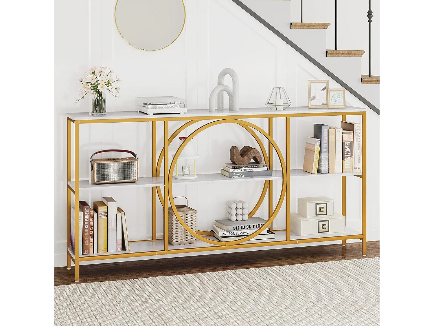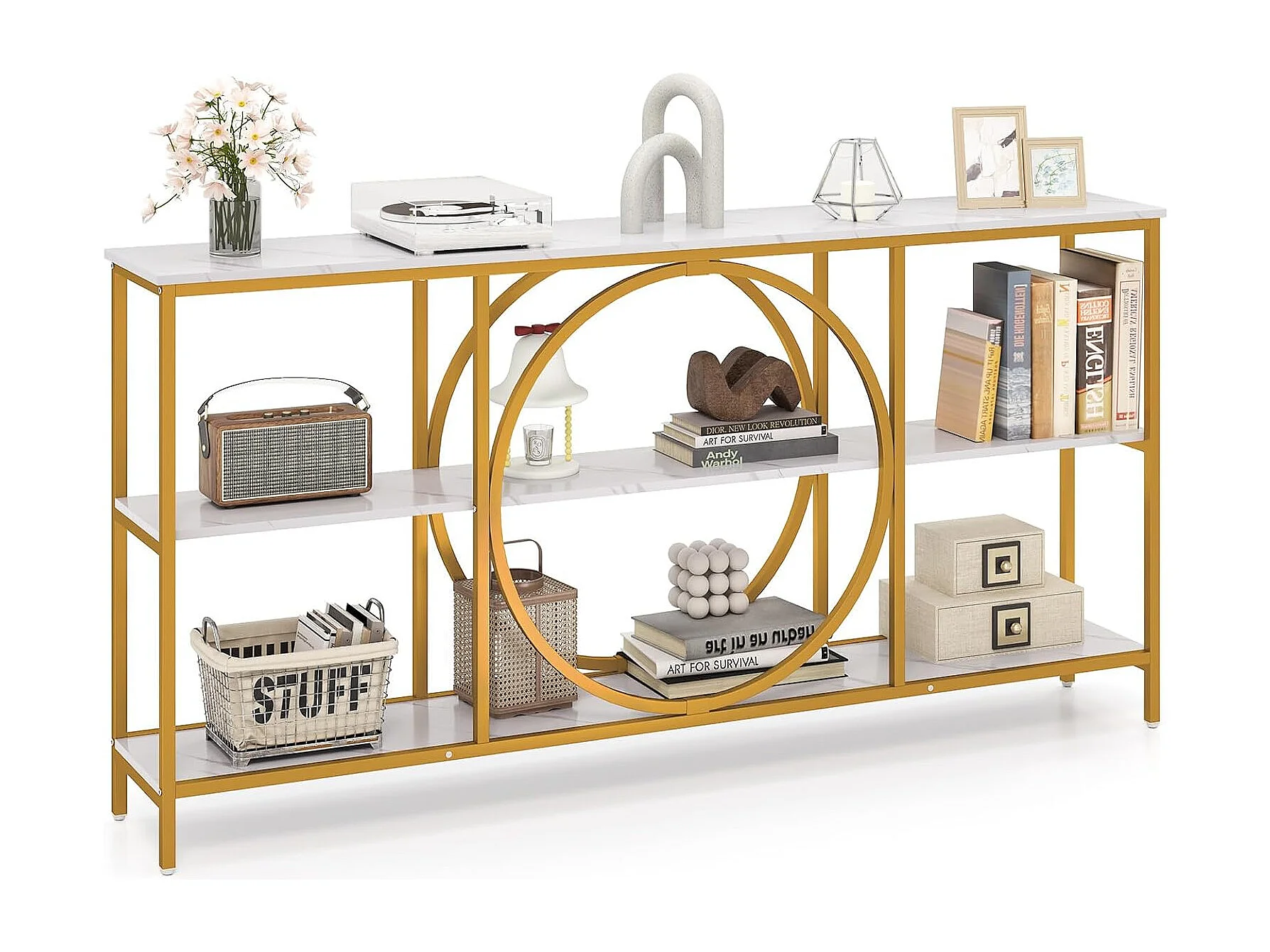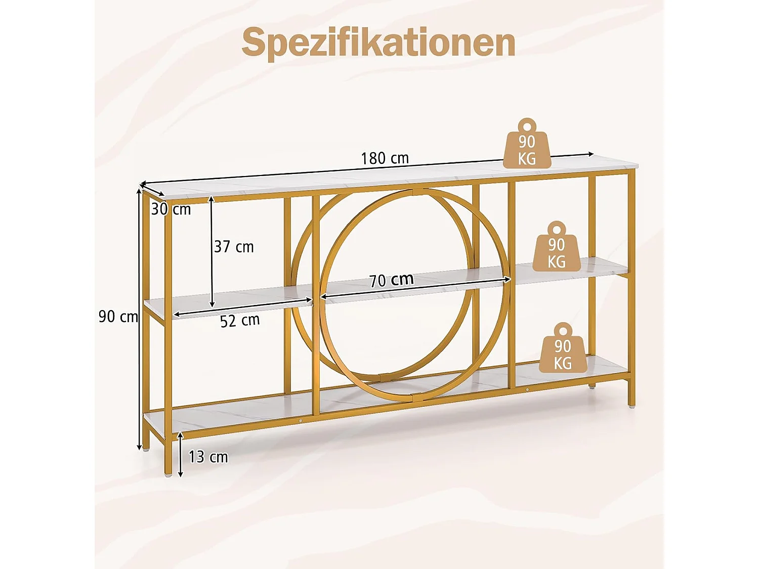 Consoletafel, smal, ingangstafel, 180 cm lang, 3 niveaus, banktafel, woonkamertafel, ideaal voor hal en woonkamer, 180 x 30 x 90 cm, witVH34685