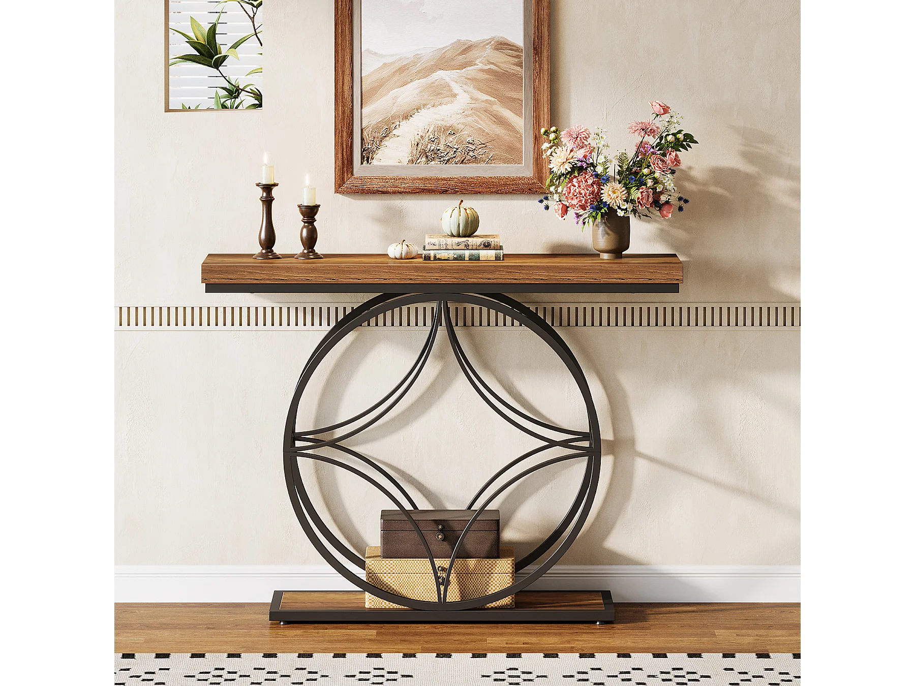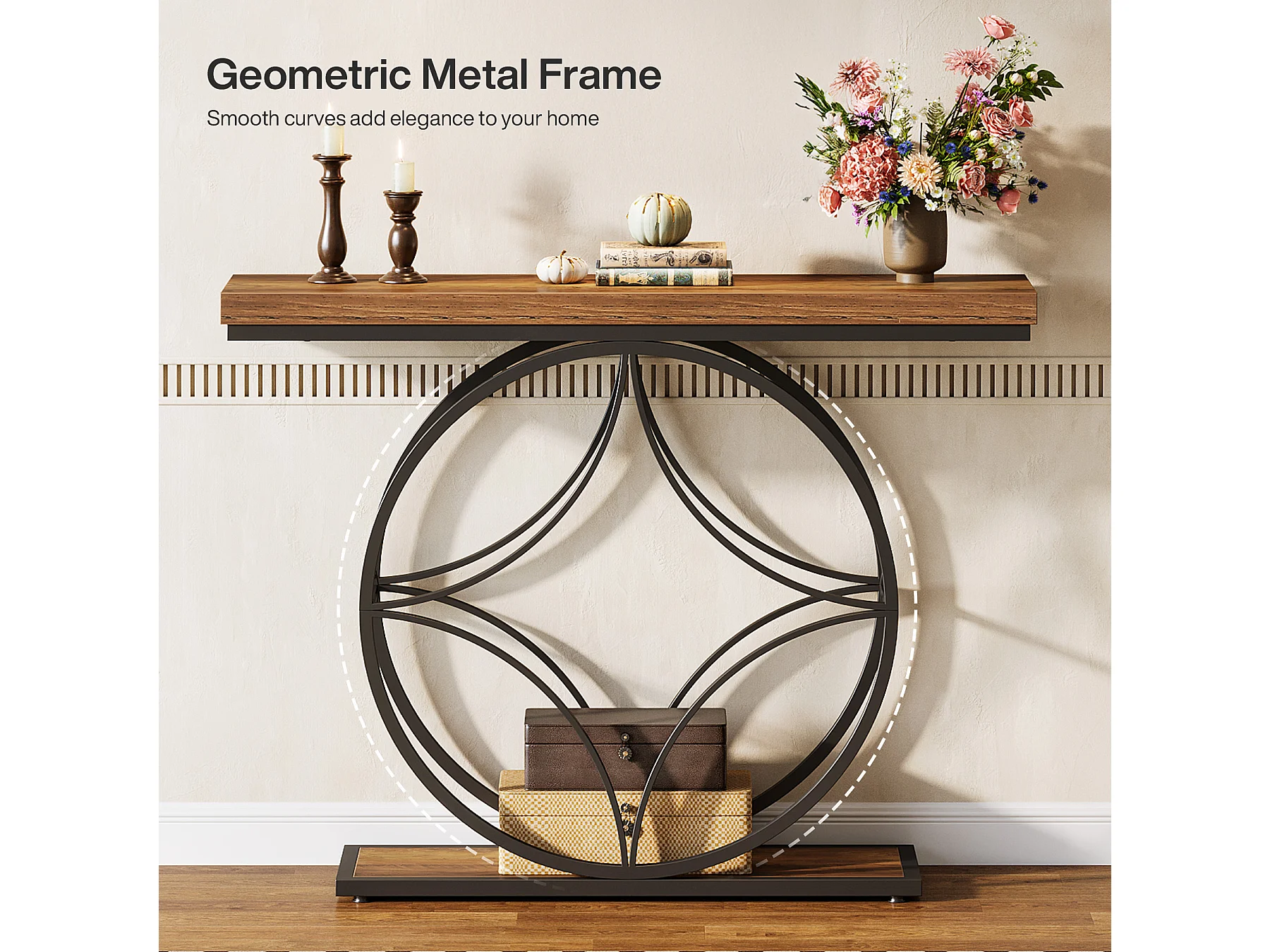 Consoletafel van 120 cm, industriële salontafel met twee lagen en geometrisch metalen frame, smalle accenttafels voor in de hal
