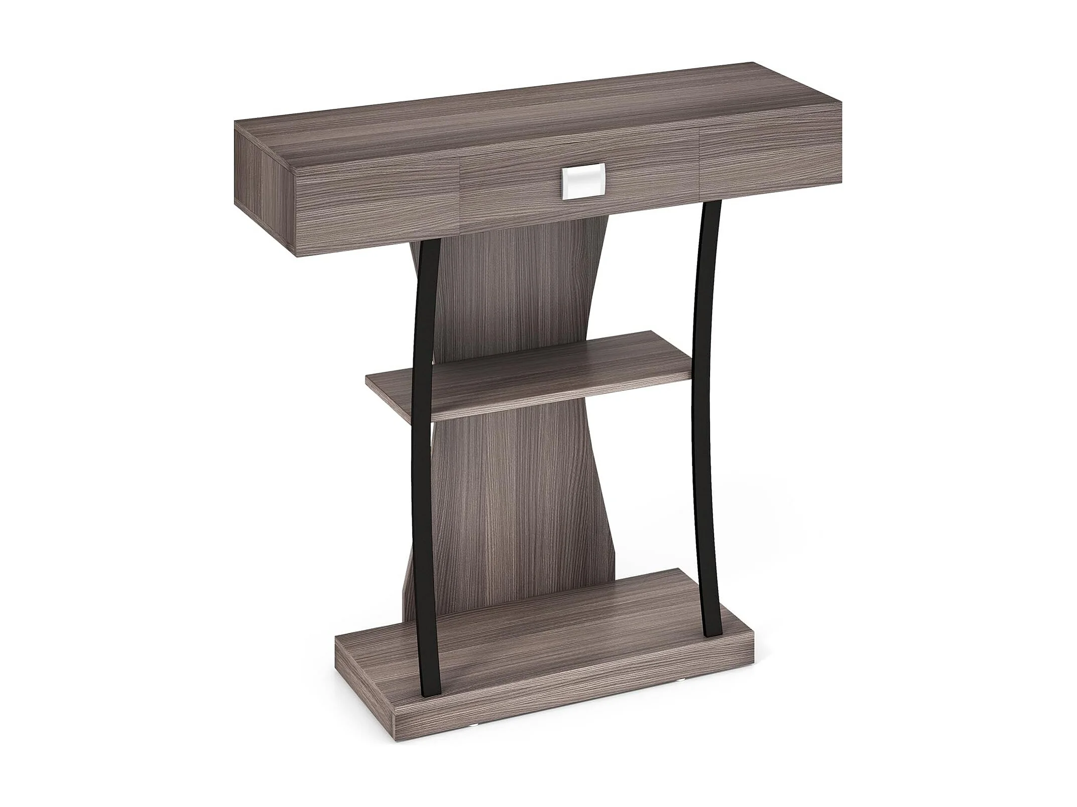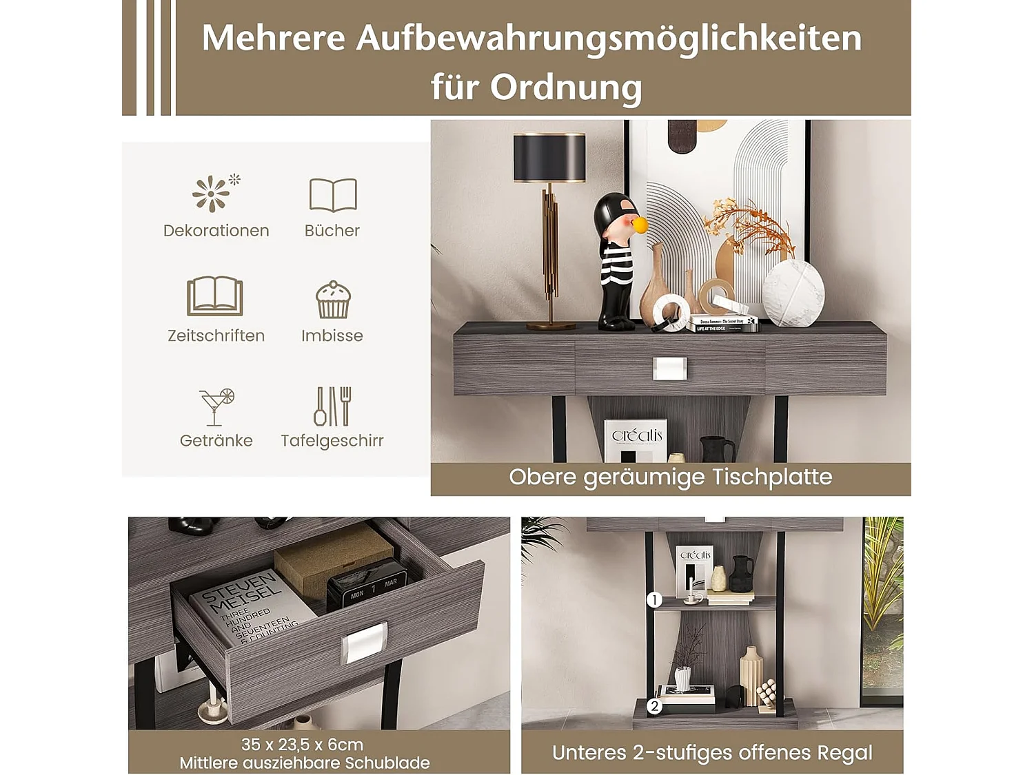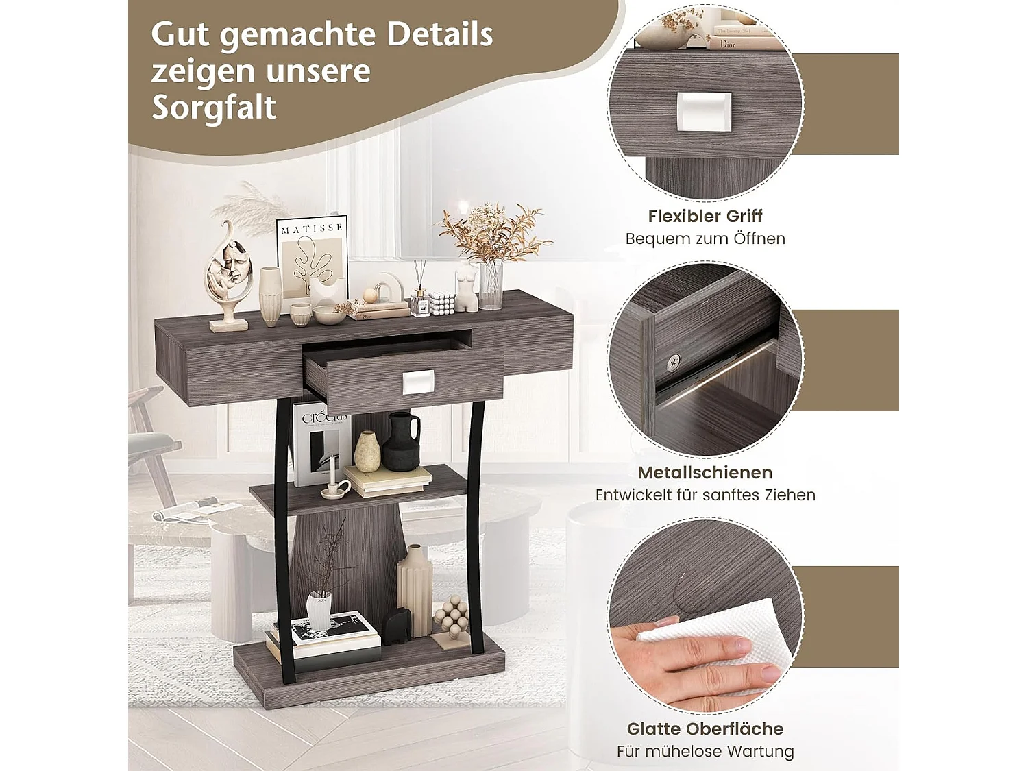 Consoletafel van hout, met laden en metalen frame en 2 planken, smalle gangtafel, bijzettafel met kantelbeveiliging, voor entree en woonkamer (grijs)VH32710