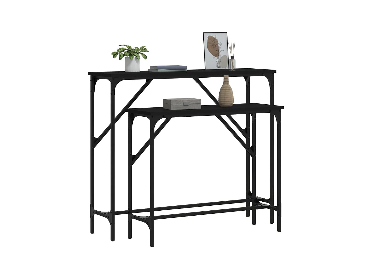 Consoletafels 2 stuks zwart bewerkt hout