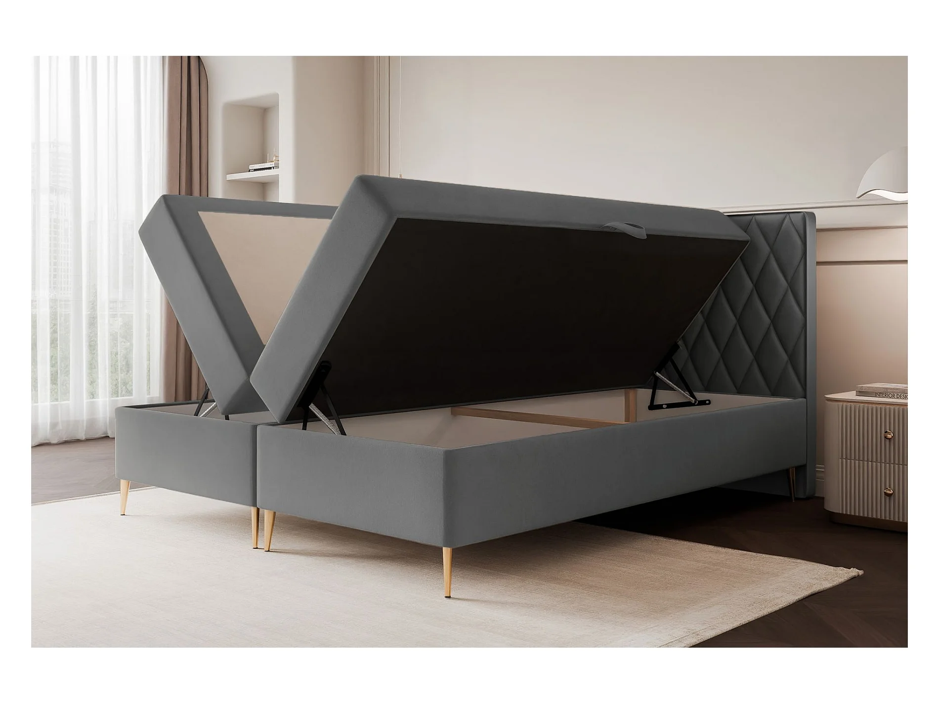 Boxspringbed 140x200 – opbergruimte en topper – hydrofobe chenille – grijs – TOGENTS