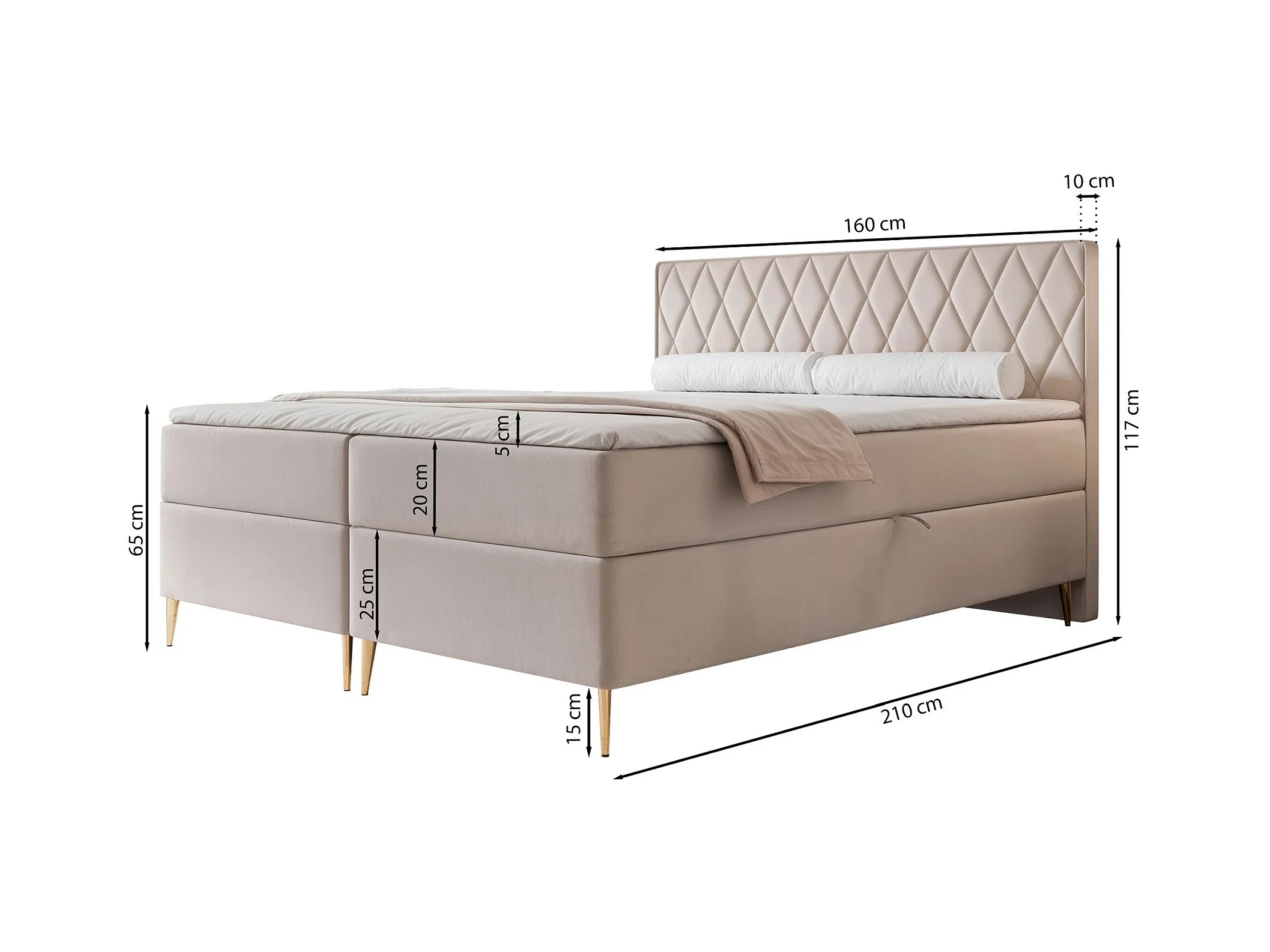 Continentaal bed - 160x200 cm - in beige fluwelen stof - SILENSIO
