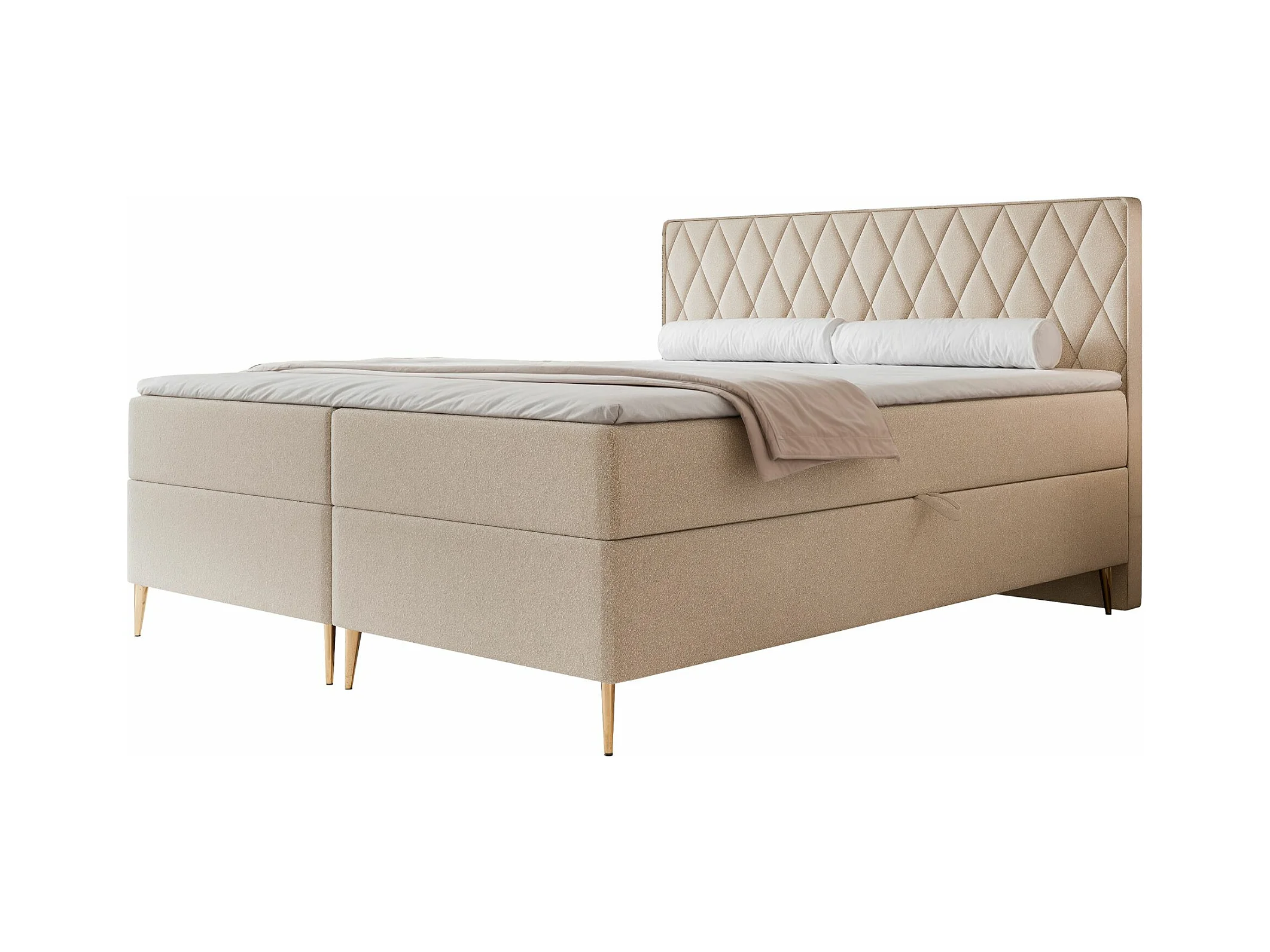 Continentaal bed - 160x200 cm - in lichtbeige badstof - CLOUDY