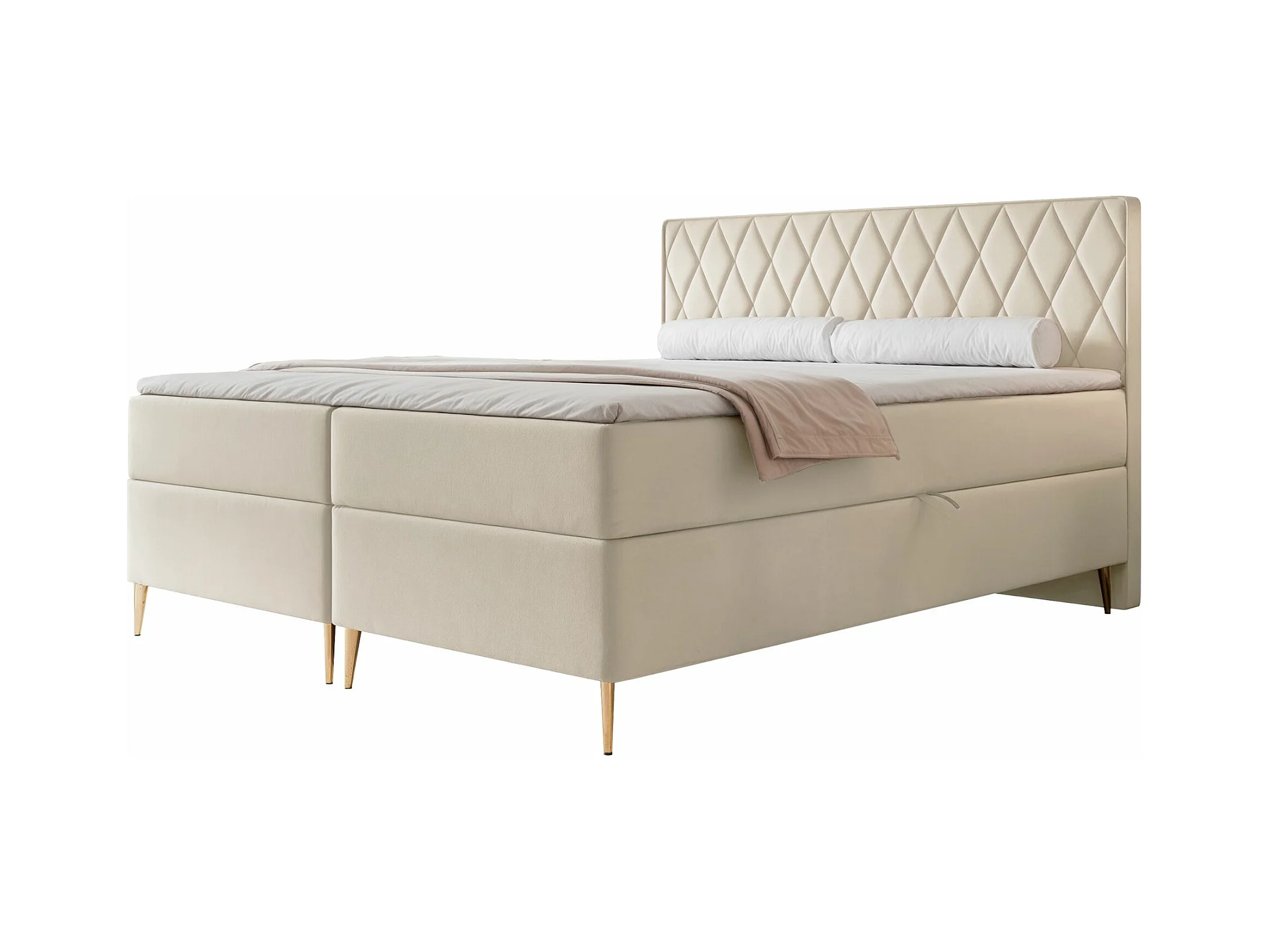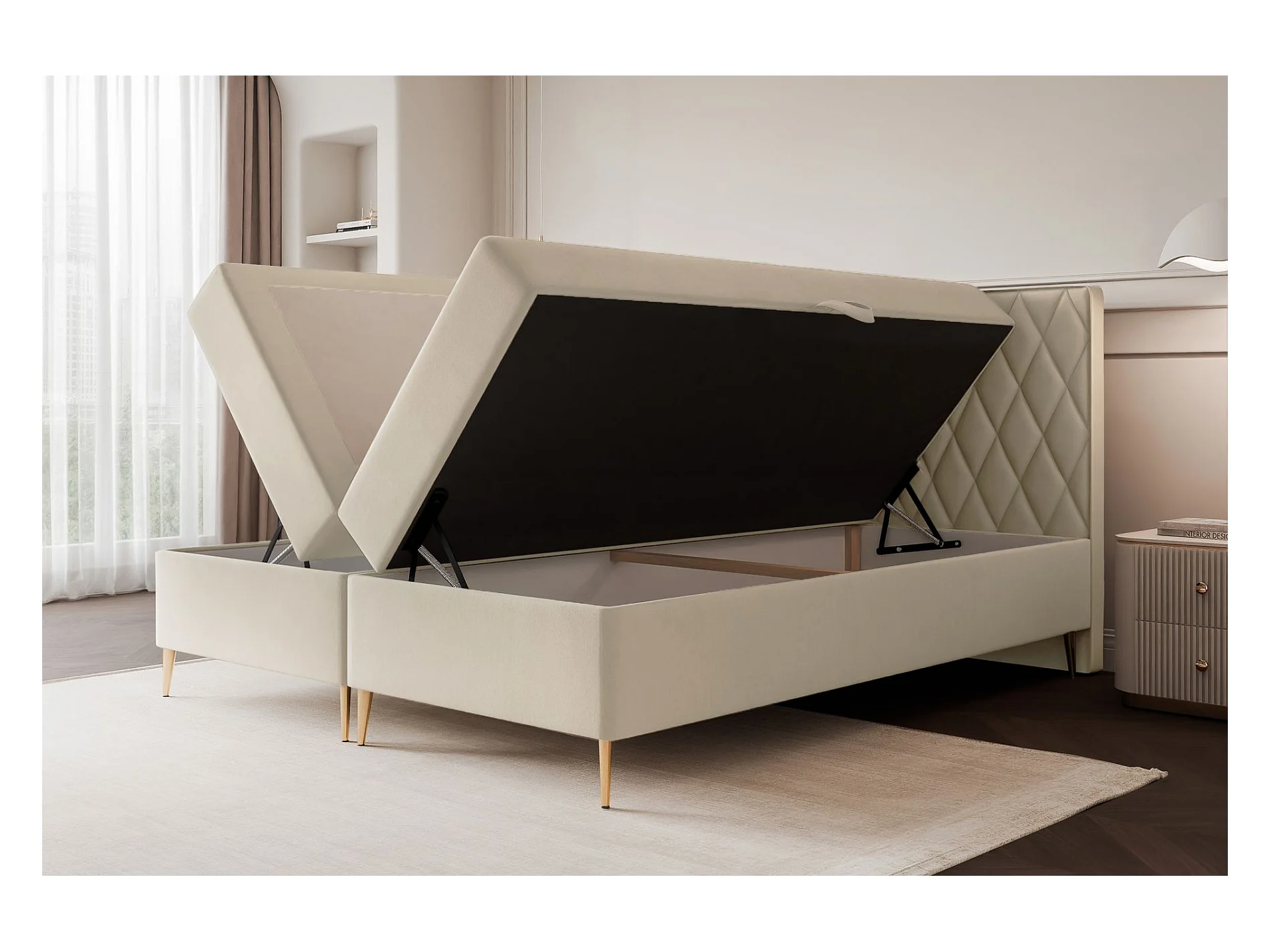 Continentaal bed - 160x200 cm - in beige fluwelen stof - SILENSIO