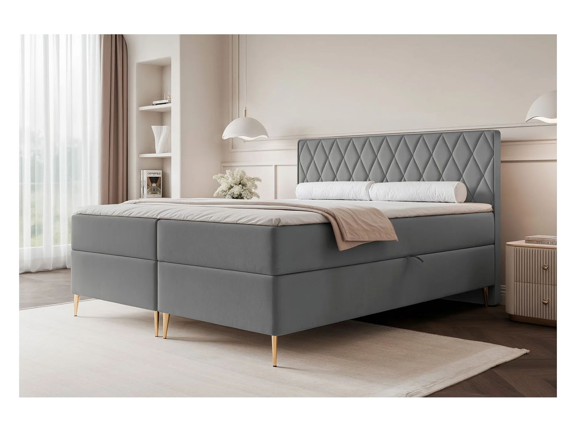 Continentaal bed - 180x200 cm - in grijze fluwelen stof - CARENZO