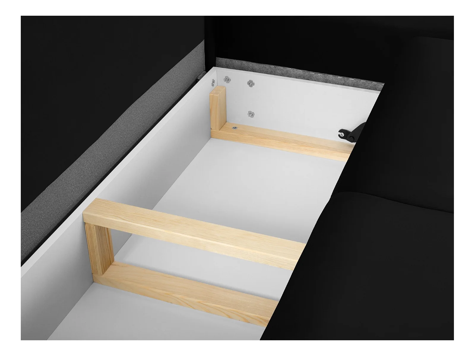 Cosmopolitan Design - Uitklapbare hoekbank links met opbergdoos "Kyoto" 4 zitplaatsen, Flueel, Zwart - 241x145x88cm