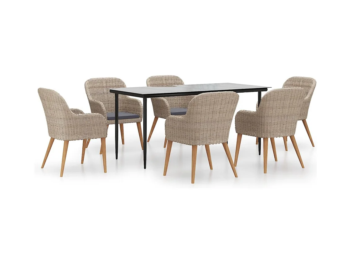 Veteli 7-delige Tuinset met kussens poly rattan bruin