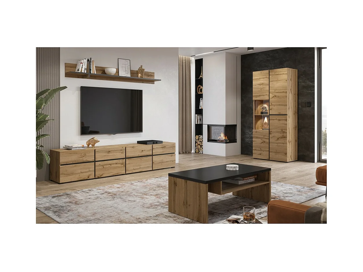 Salontafel HAVANA – Eiken en zwart – Mat zwart blad – Met nis – Natuurlijke en moderne stijl