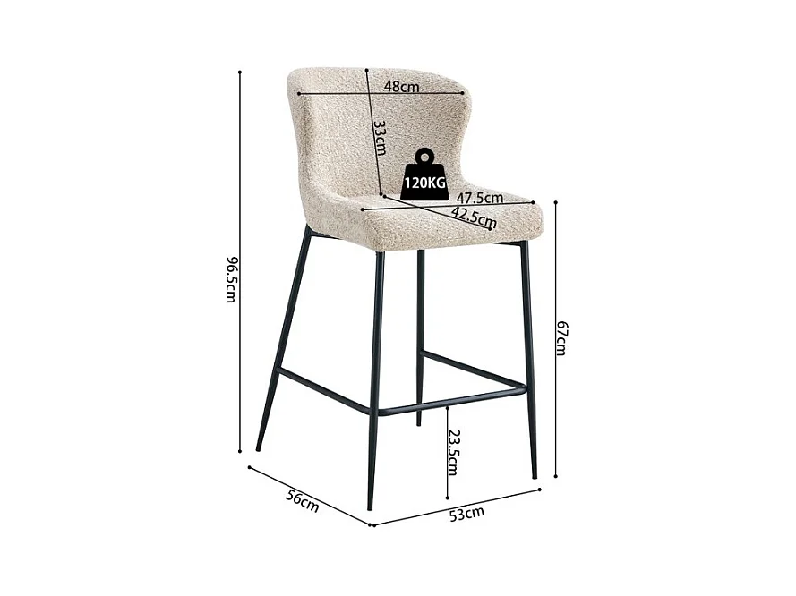 Counterstoel LISE – Beige bouclé stof – Zwarte metalen poten - Design/industriële stijl