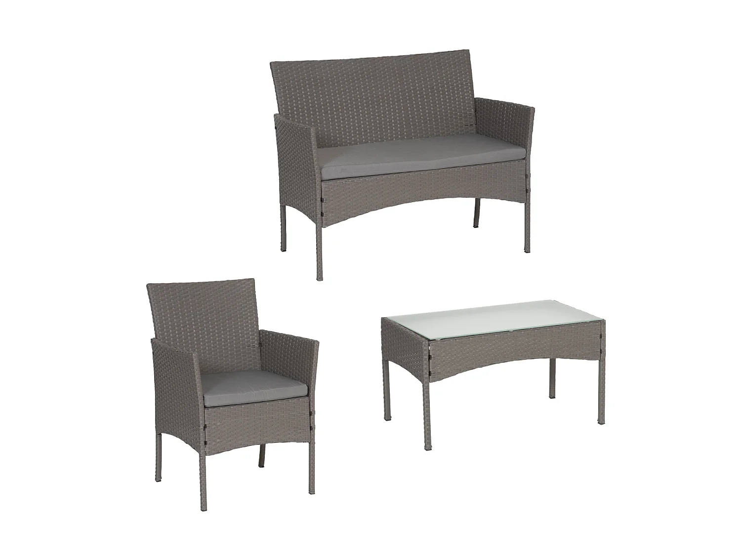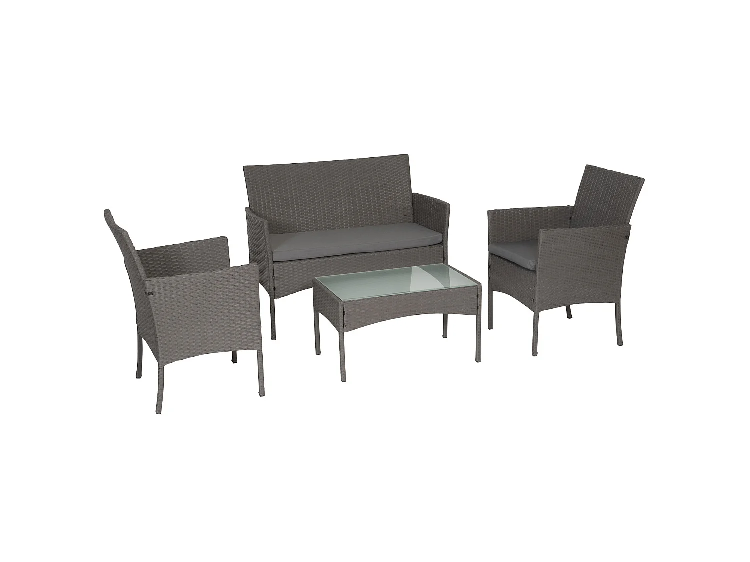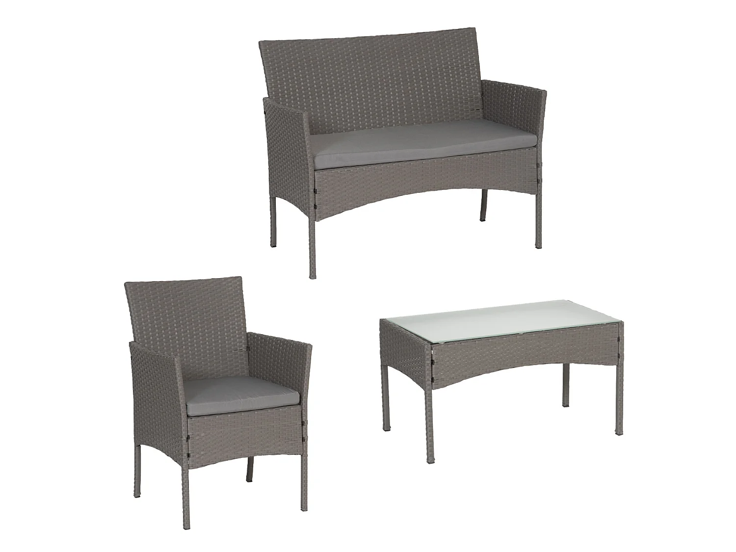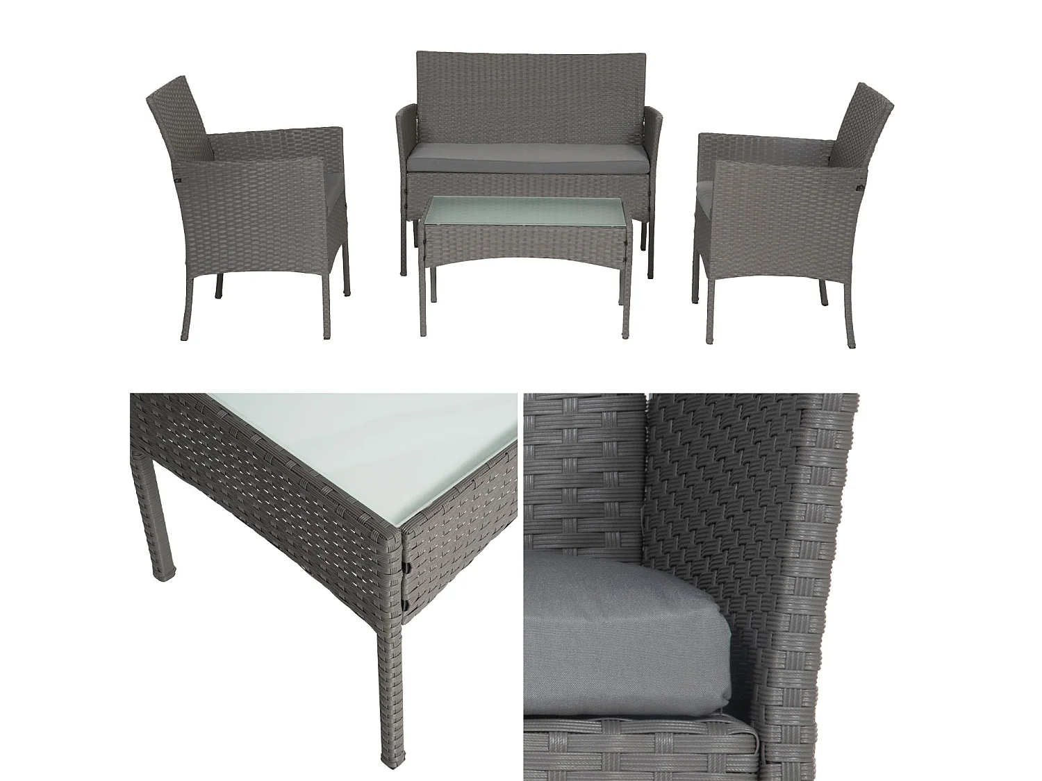 CORDOUE tuinmeubelset in grijs gevlochten kunststof - grijze kussens
