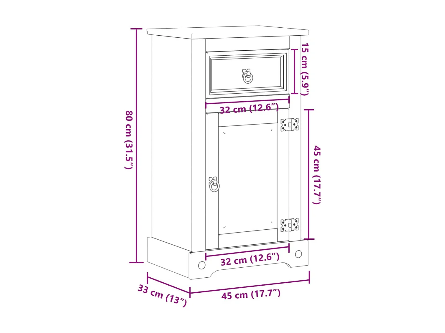 Corona badkamerkast 45x33x80 cm massief grenenhout