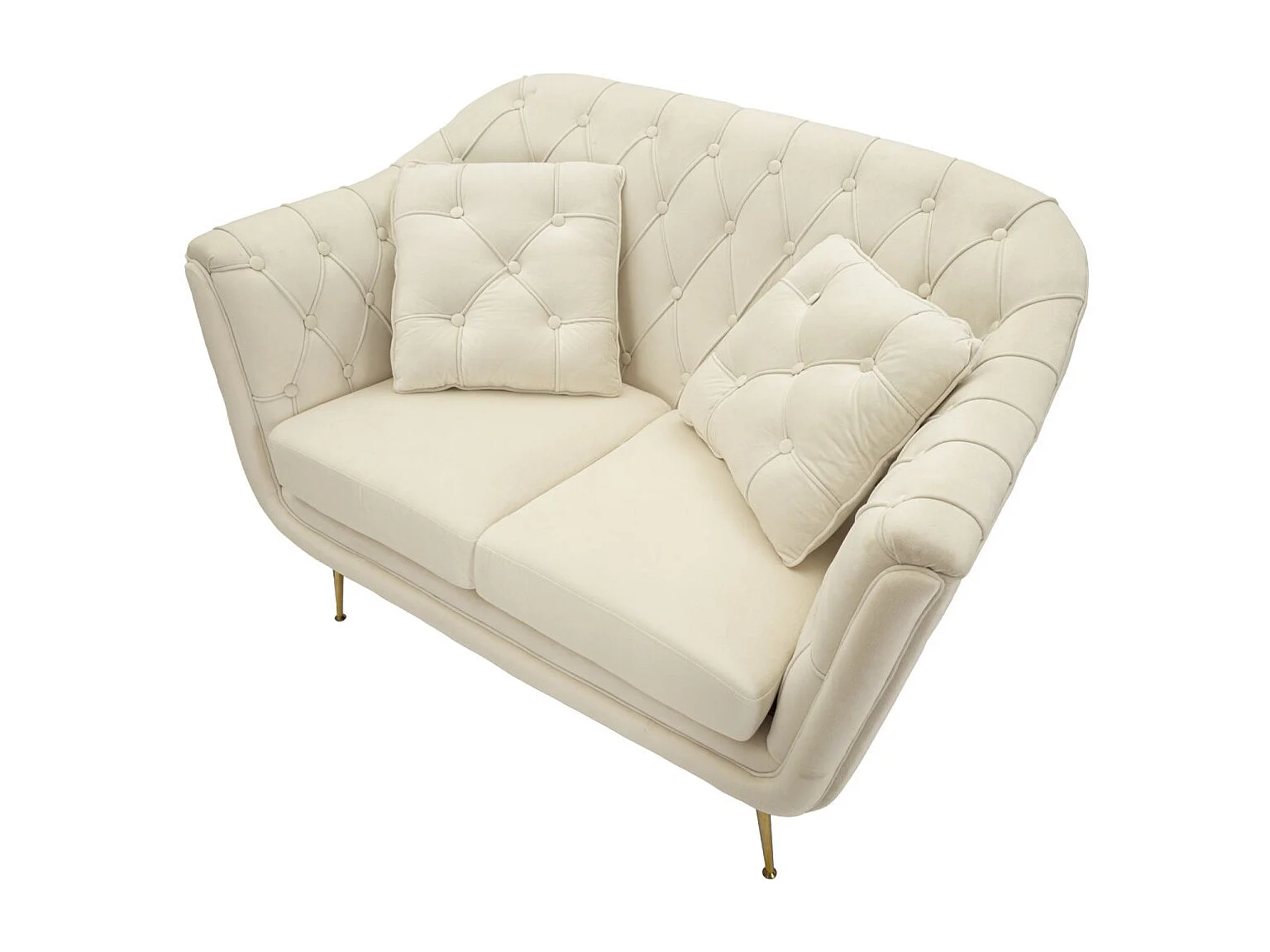 Crème stoffen bank met kussens 130 x 83 x 91 cm