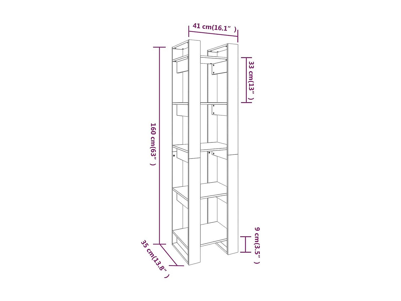 Cyrik Boekenkast/kamerscherm 41x35x160 cm massief grenenhout zwart