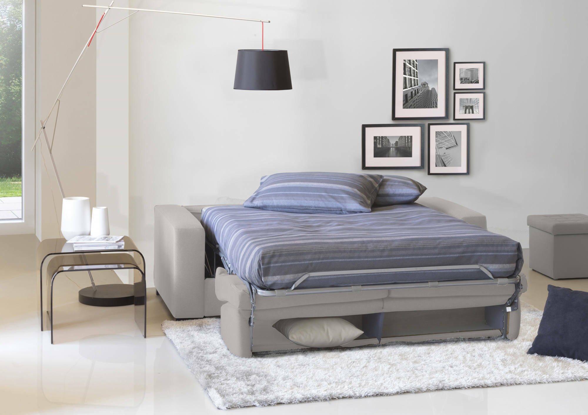 Dekuba slaapbank, 2-zitsbank, 100% Made in Italy, woonkamerbank met draaibare opening, in gewatteerde stof, met standaard armleuningen, 180x95h90 cm, Taupe
