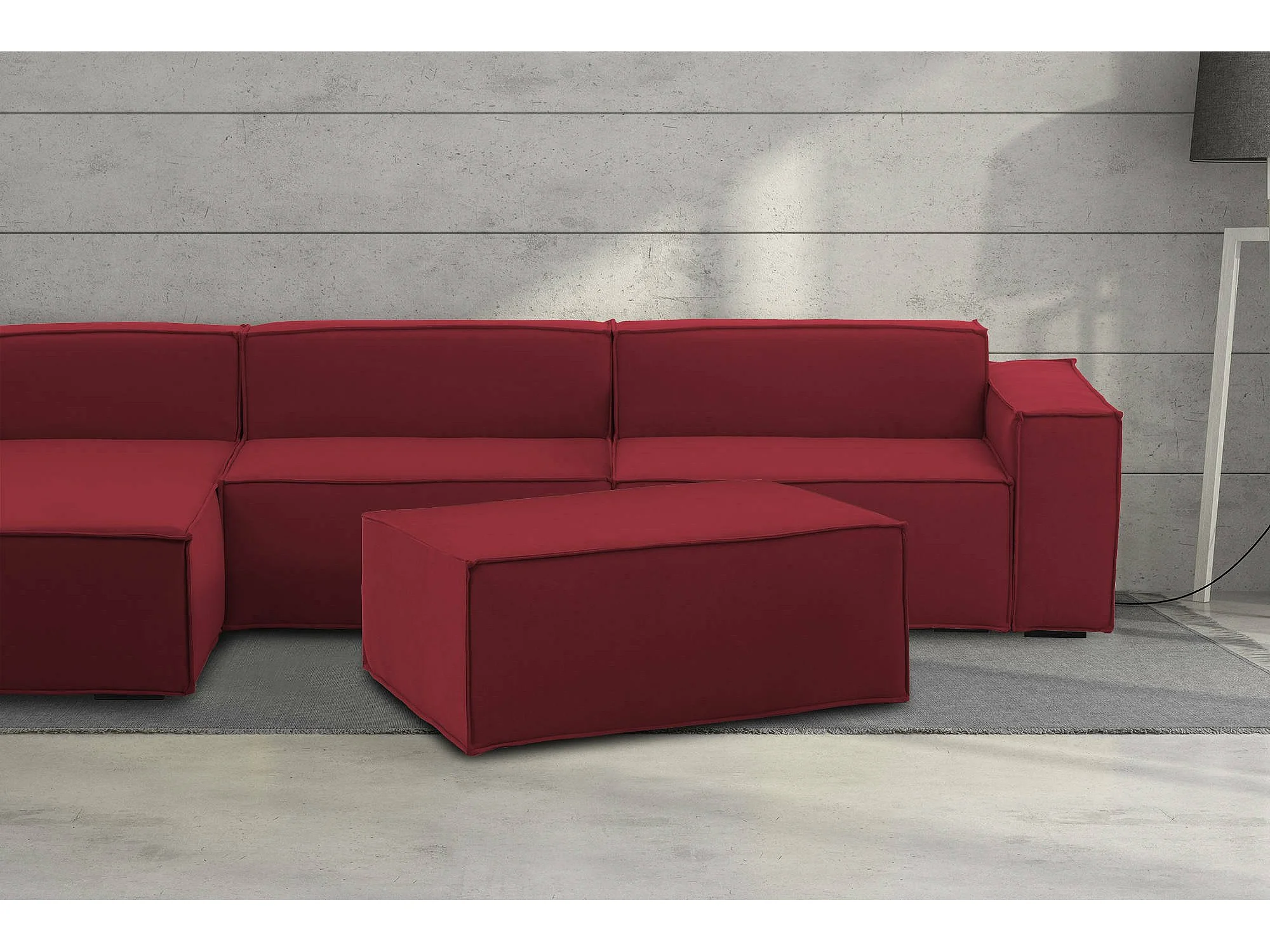 Dabdella Poef, Woonkamerpoef, 100% Made in Italy, Ontspannende fauteuil in gewatteerde stof, 100x70h43 cm, Rood