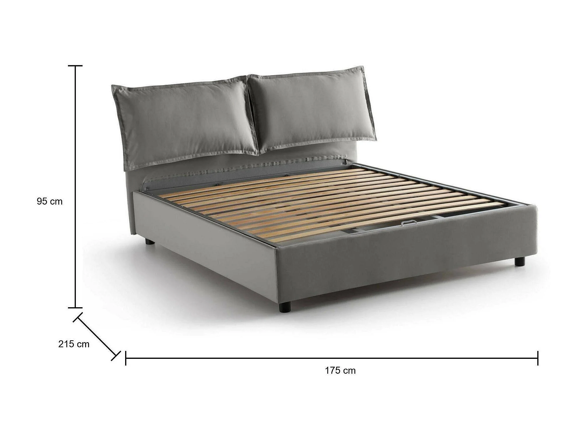 Dabdelli tweepersoonsbed, Opbergbed met stoffen bekleding, 100% Made in Italy, Opening aan de voorzijde, geschikt voor matras 160x200 cm, Grijs