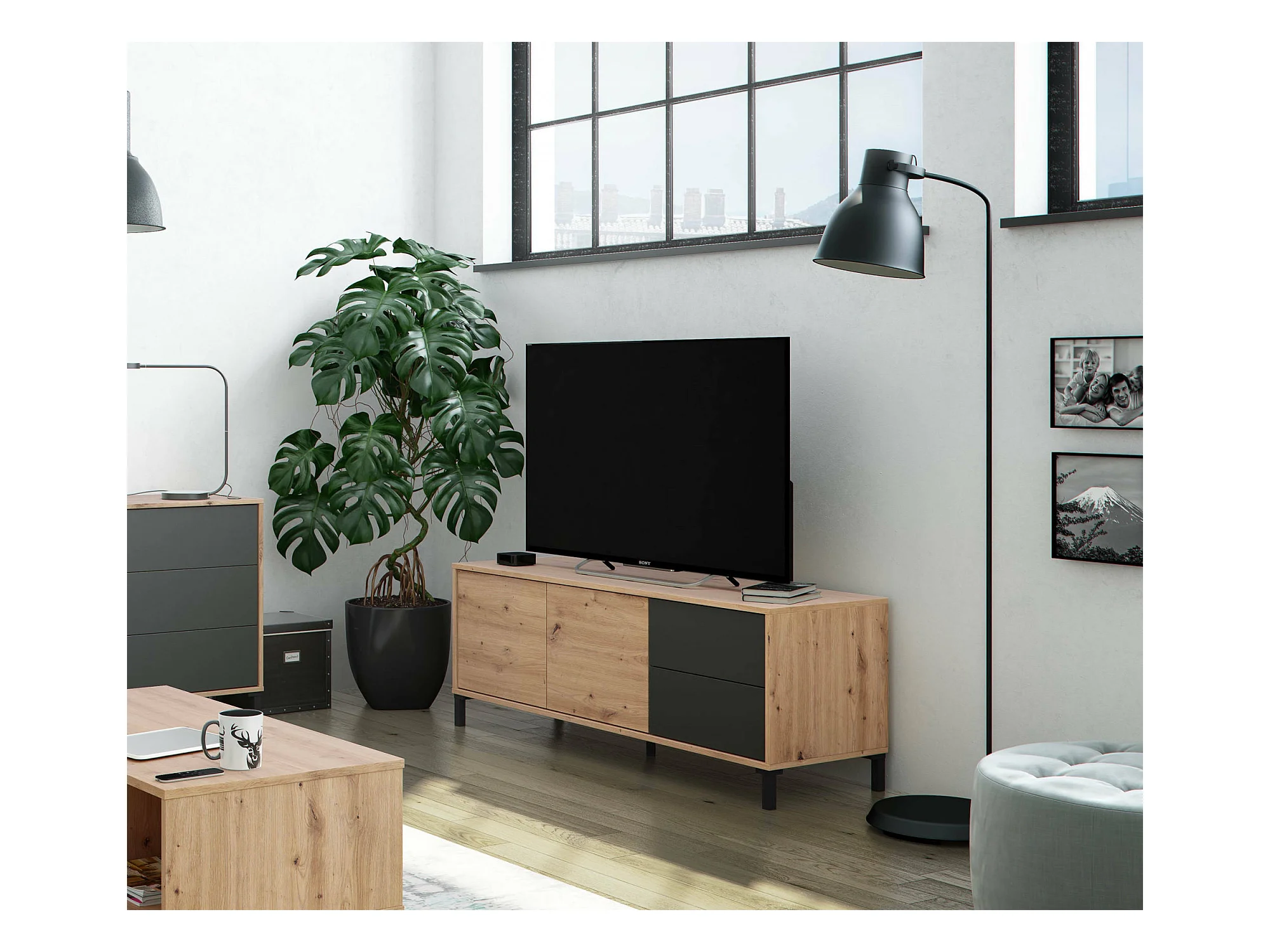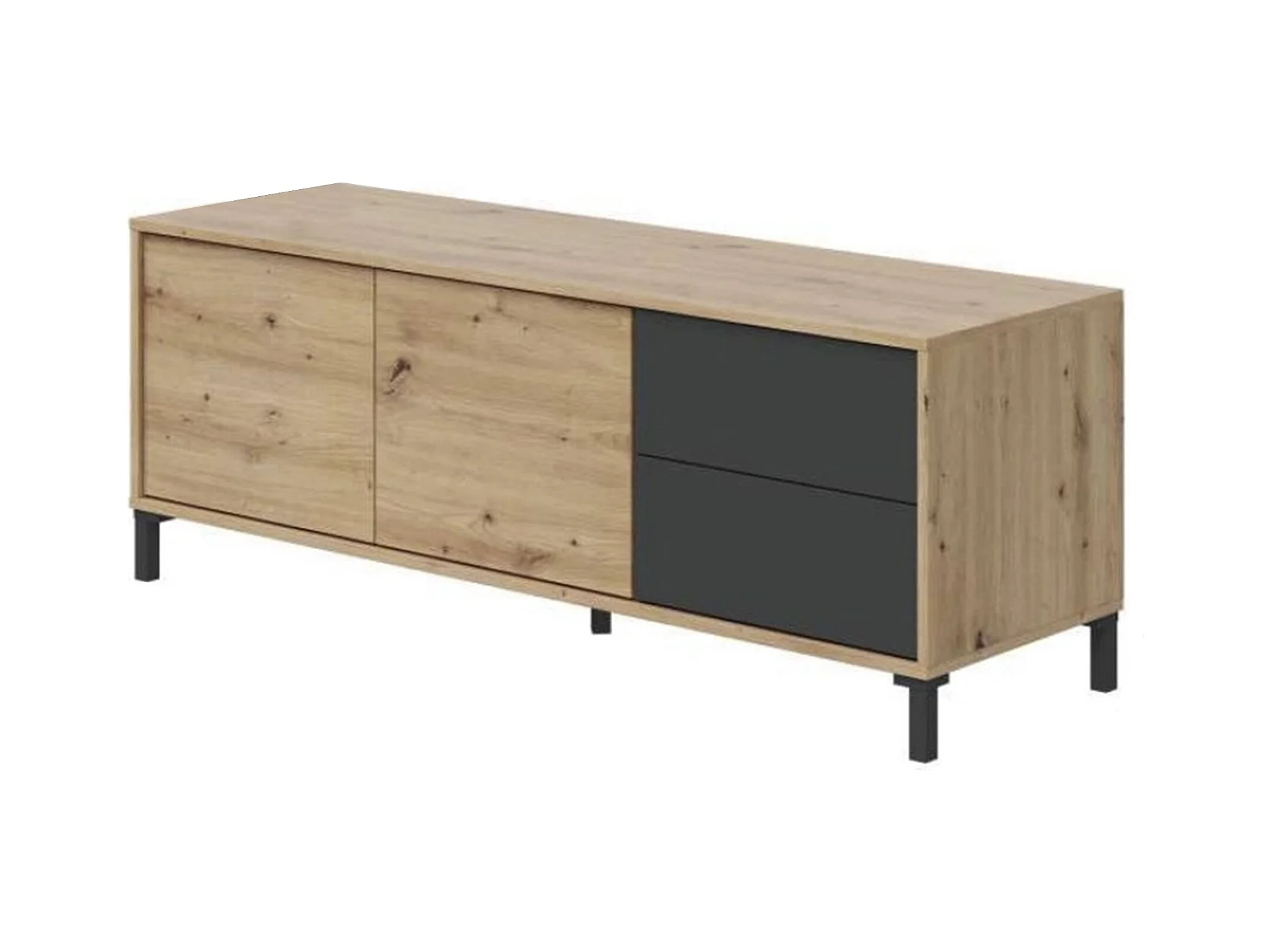Daca dressoir, Modern dressoir met 2 deuren, Woonkamerbuffet, TV-kast, Dressoir met poten voor woonkamer, 130x41h47 cm, Geknoopt eiken en antraciet