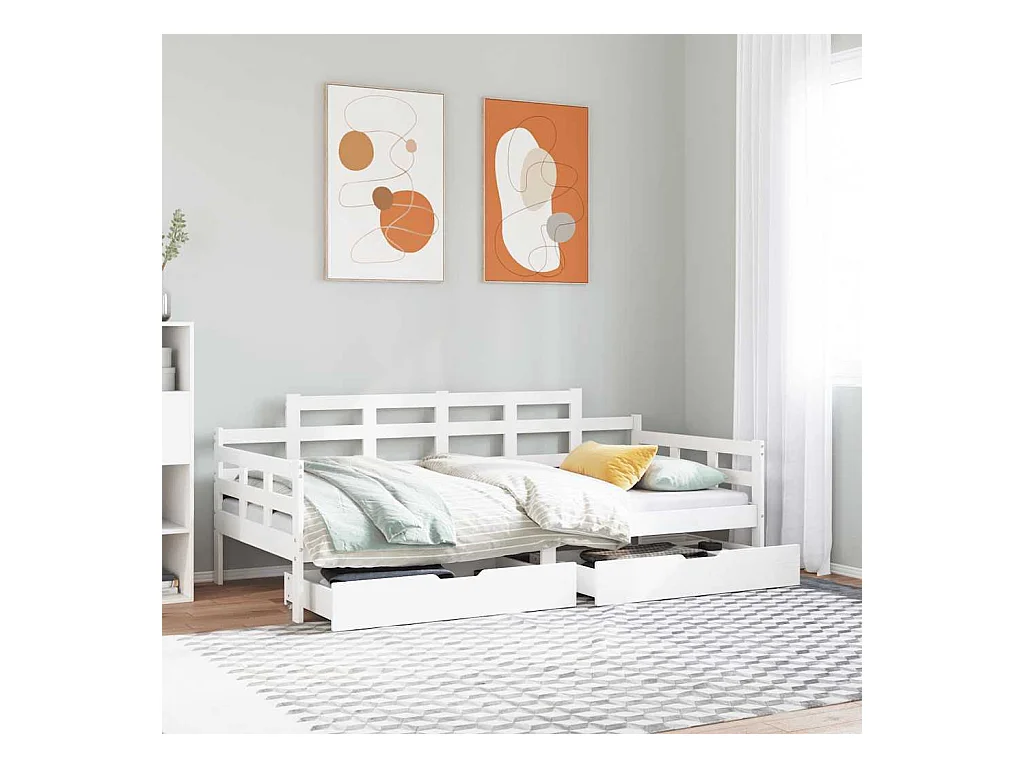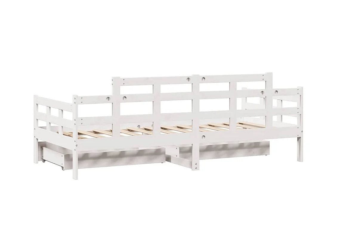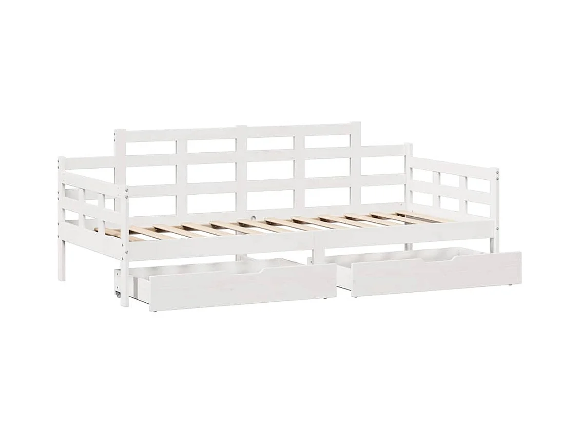 Dagbed en lades zonder matras wit 90x190 cm massief hout