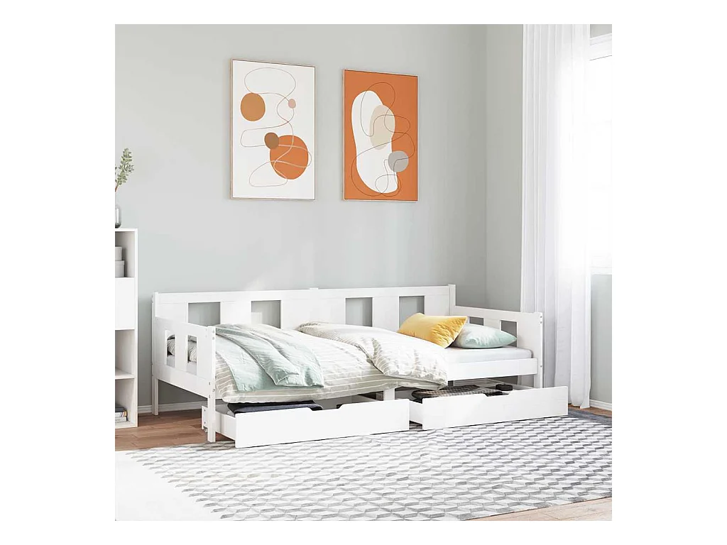Dagbed en lades zonder matras wit 90x190 cm massief hout