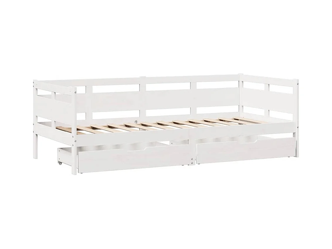 Dagbed en lades zonder matras wit 90x200 cm massief hout
