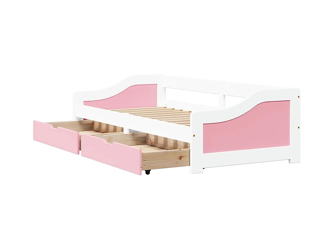 Dagbed met 2 lades zonder matras IRUN wit roze 90x200 cm