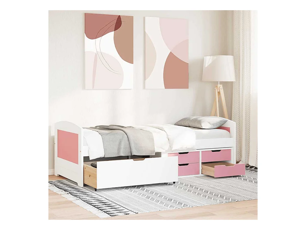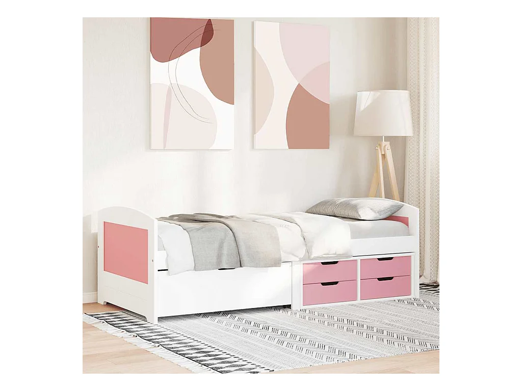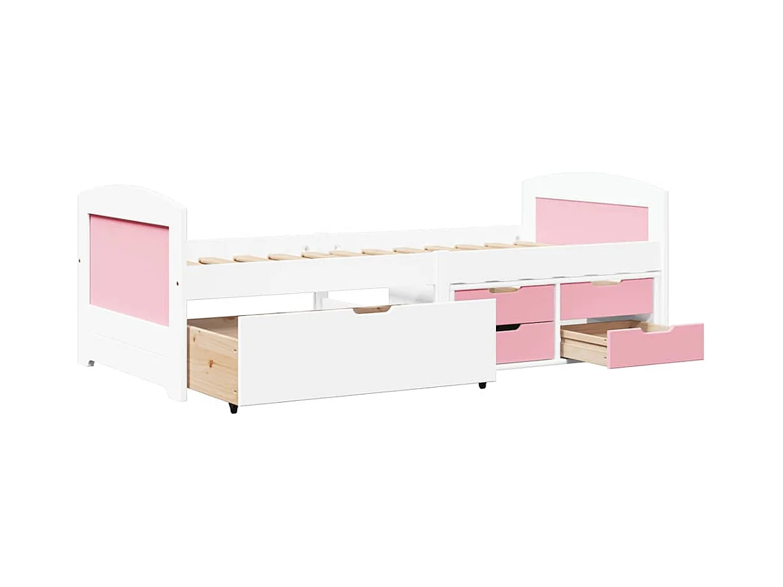 Dagbed met 2 lades zonder matras IRUN wit roze 90x200 cm