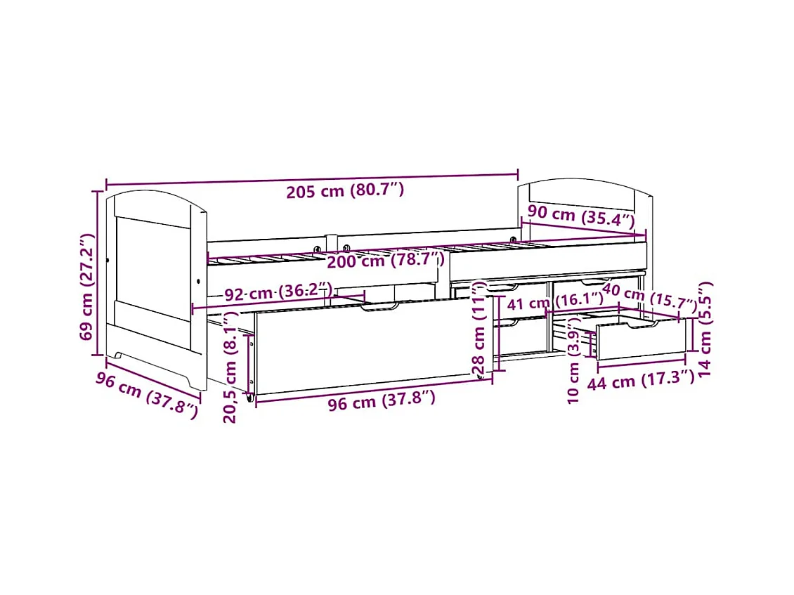Dagbed met onderschuifbed en lades zonder matras roze 90x200 cm