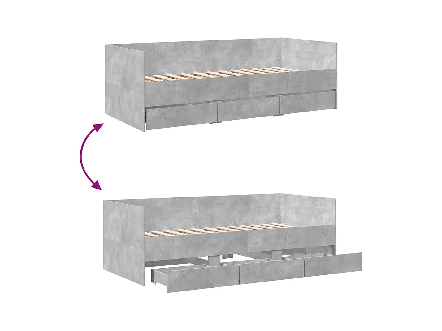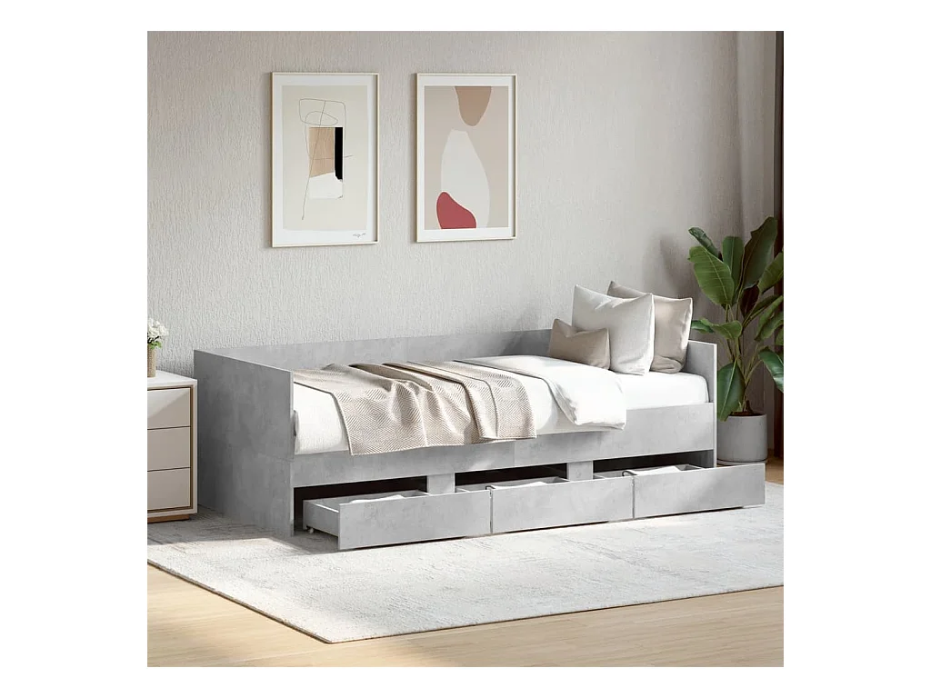 Dagbed met lades zonder matras betongrijs 90x190 cm