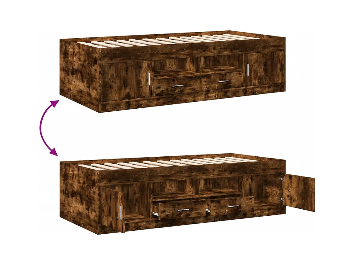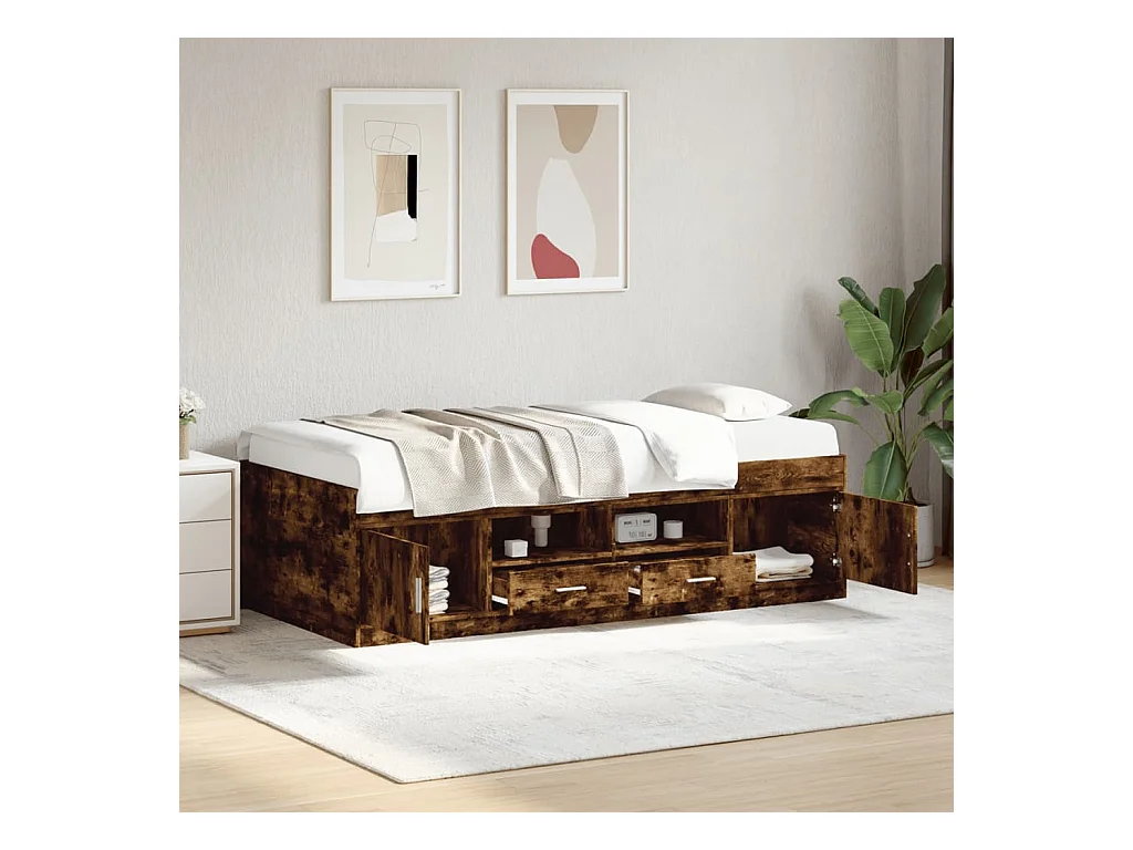 Bedframe met lades zonder matras gerookt eiken 75x190 cm