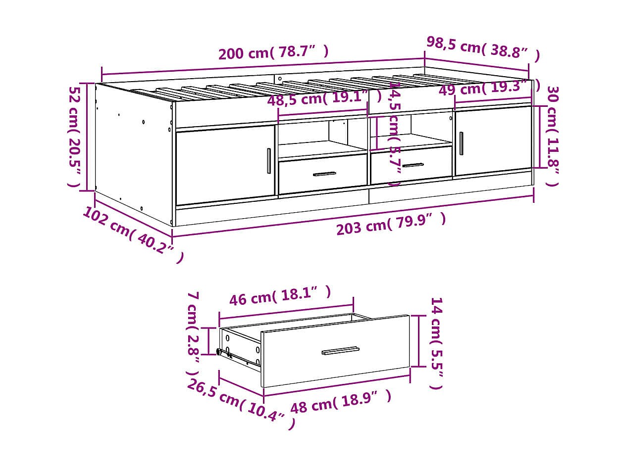 Dagbed met lades zonder matras sonoma eiken 100x200 cm