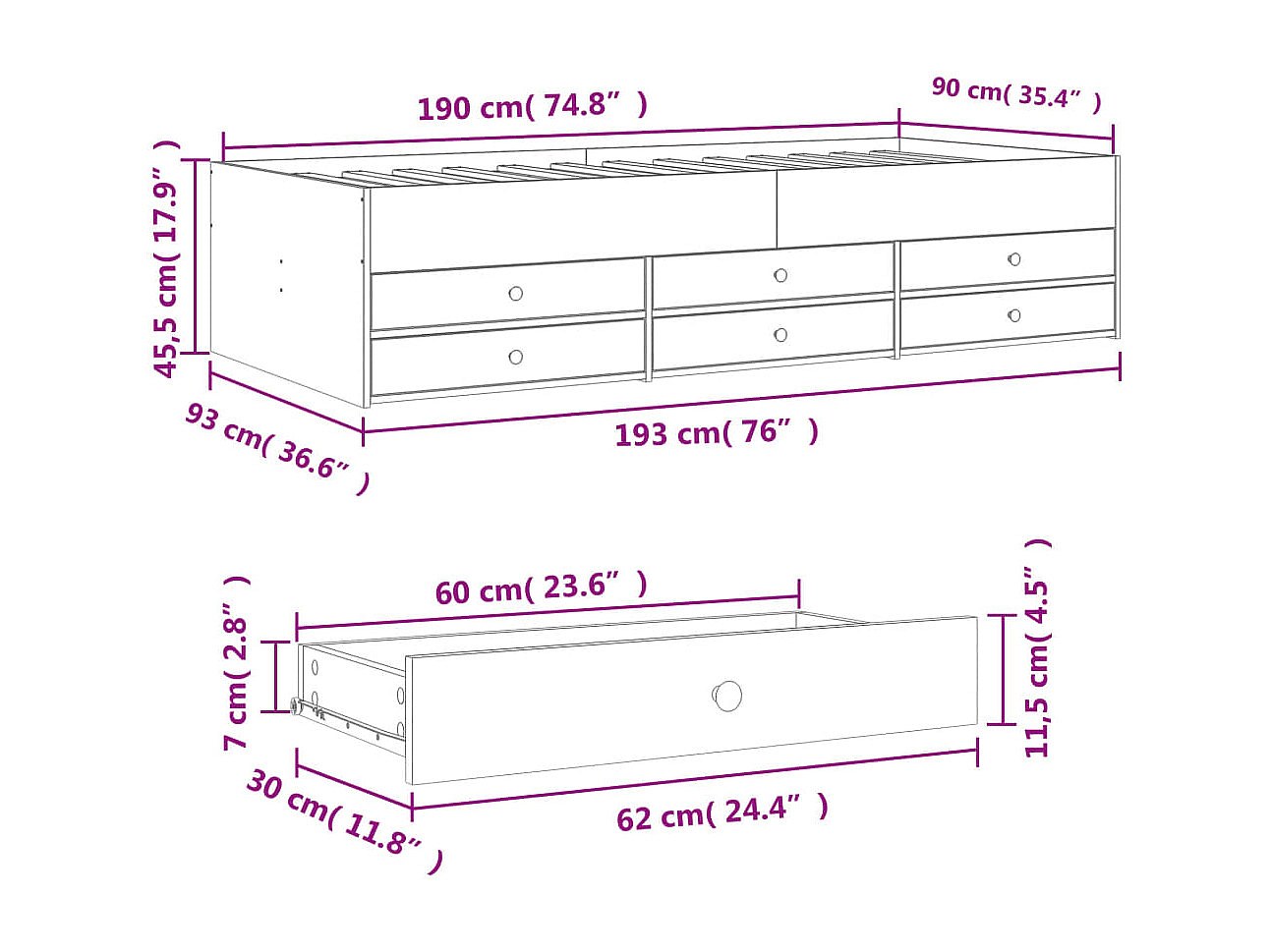 Dagbed met lades zonder matras zwart 90x190 cm
