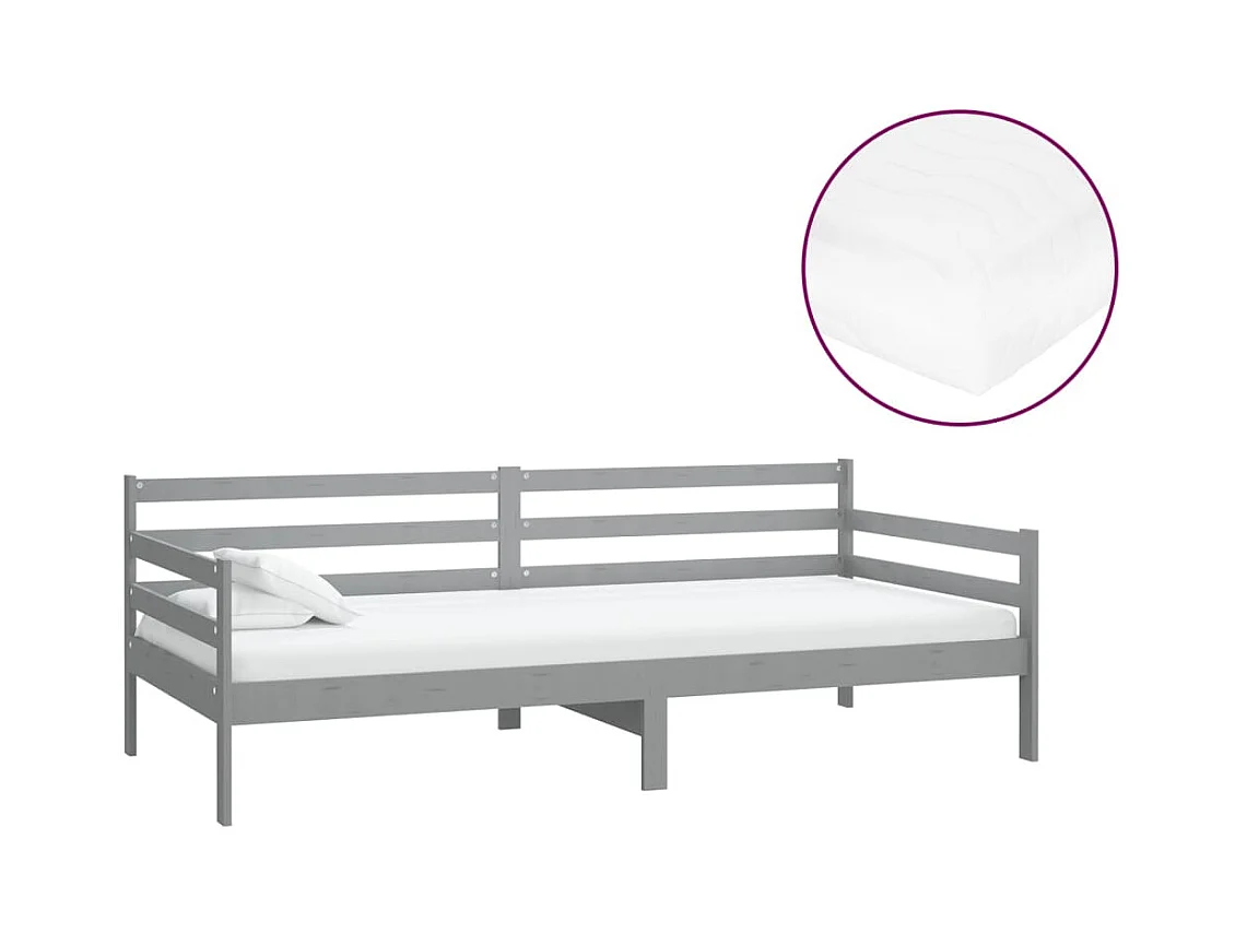 Dagbed met matras 90x200 cm Grijs Massief grenenhout