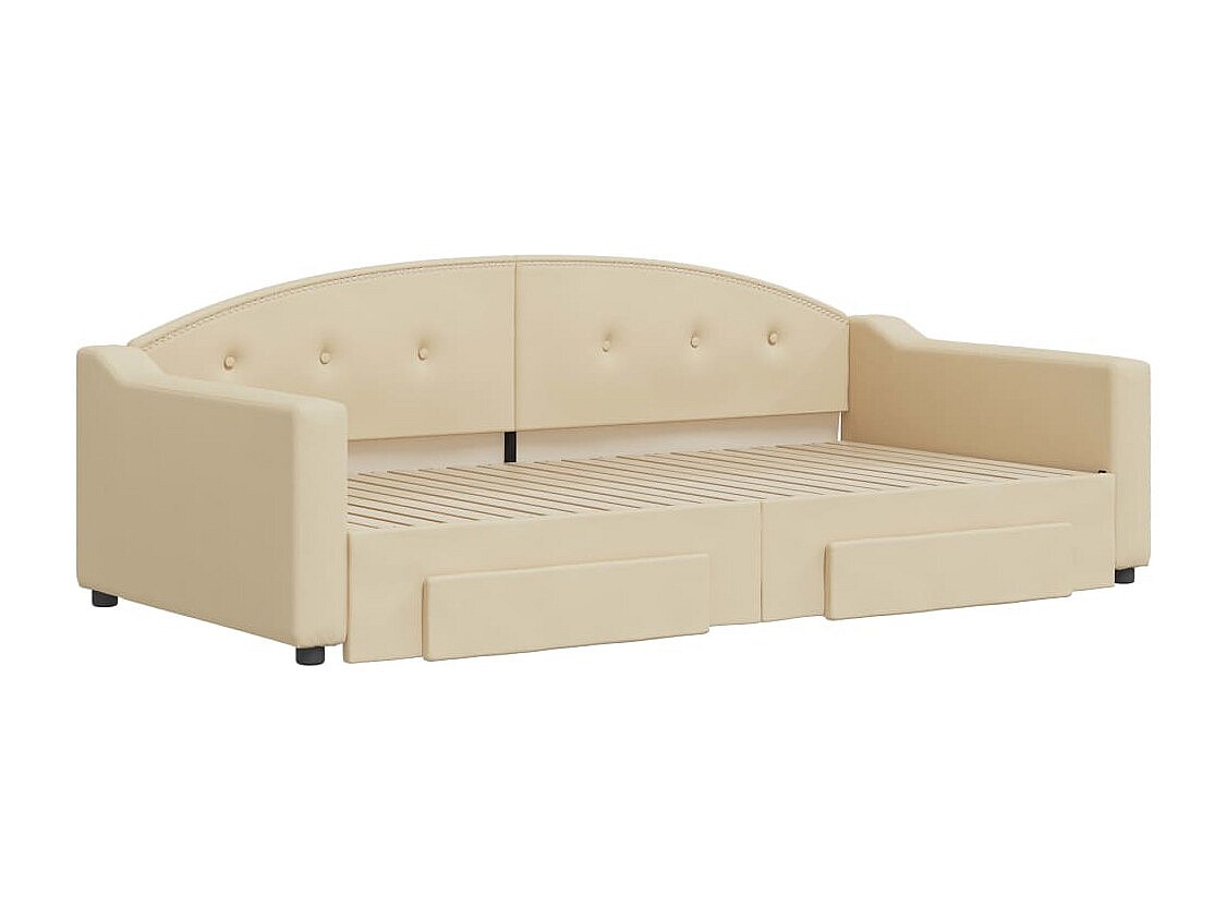 Dagbed met onderschuifbed en lades crème 100x200 cm stof