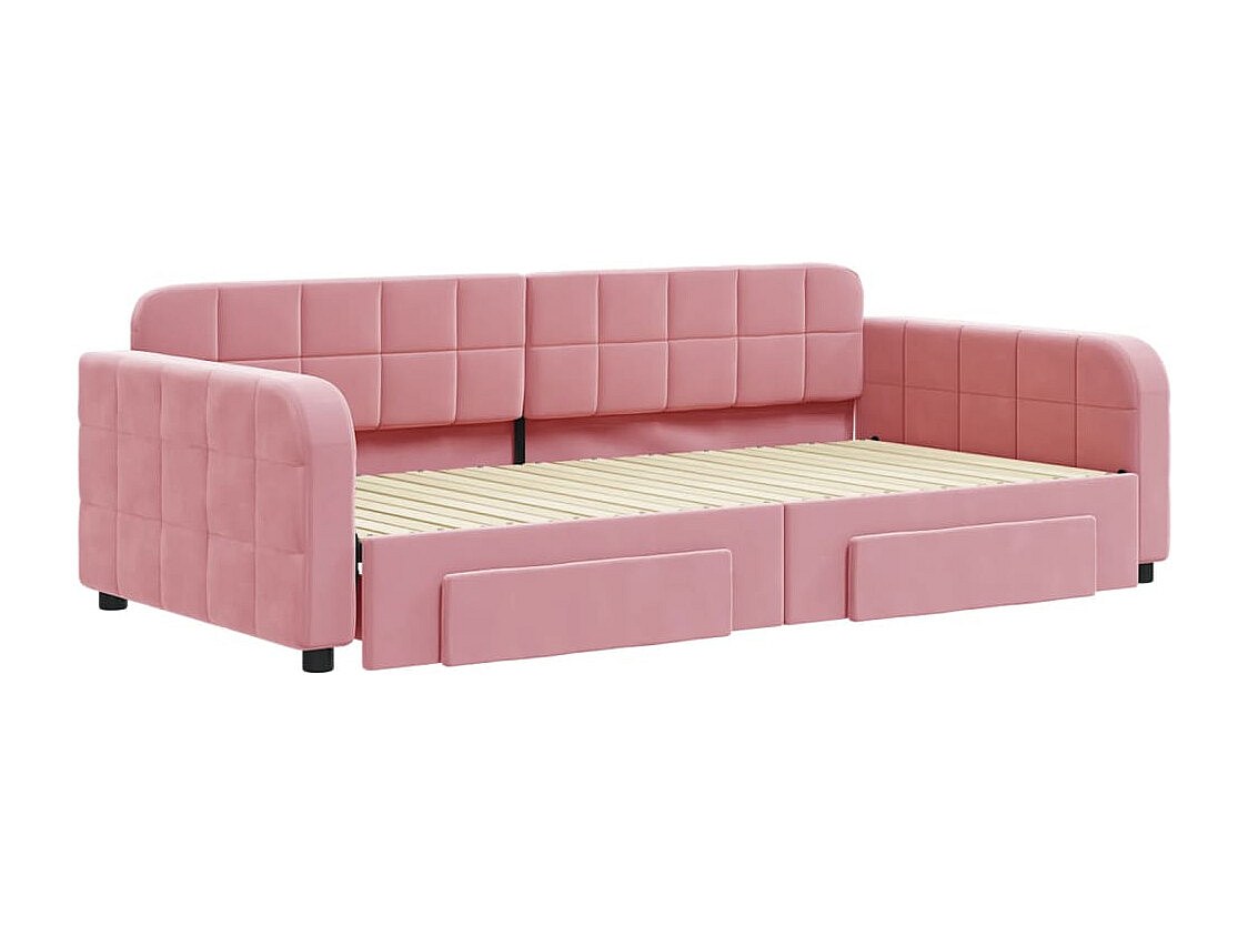 Dagbed met onderschuifbed en lades roze 100x200 cm fluweel