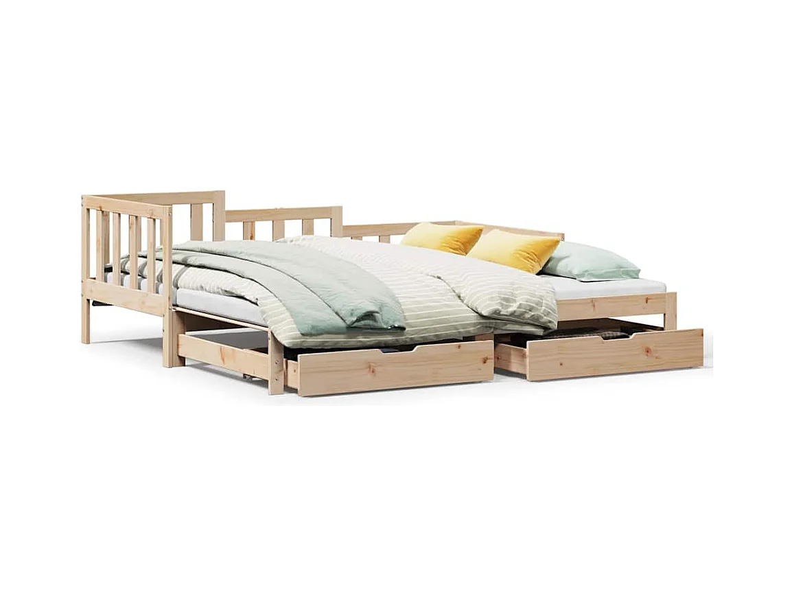 Dagbed en uitschuifbed zonder matras 90x190 cm massief hout