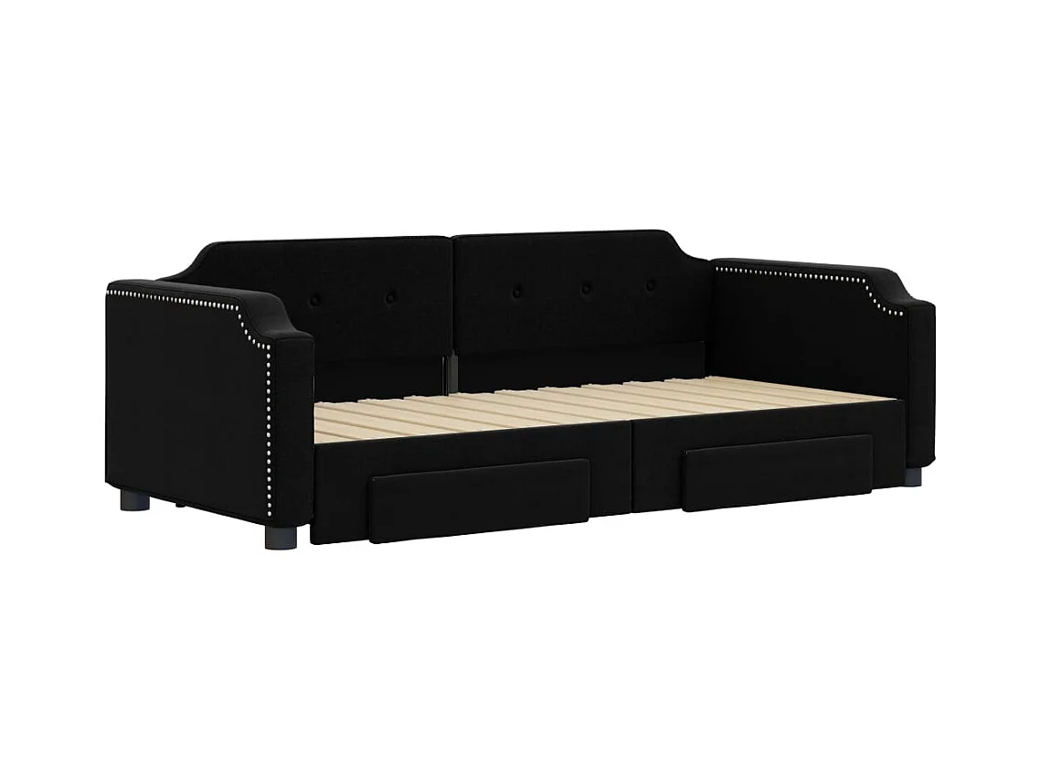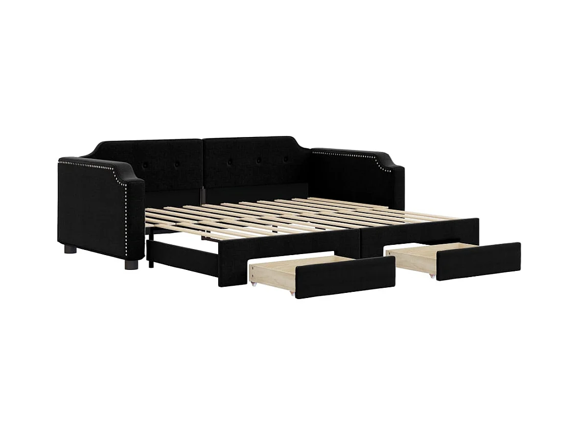 Dagbed met onderschuifbed en lades zonder matras zwart 100x200cm