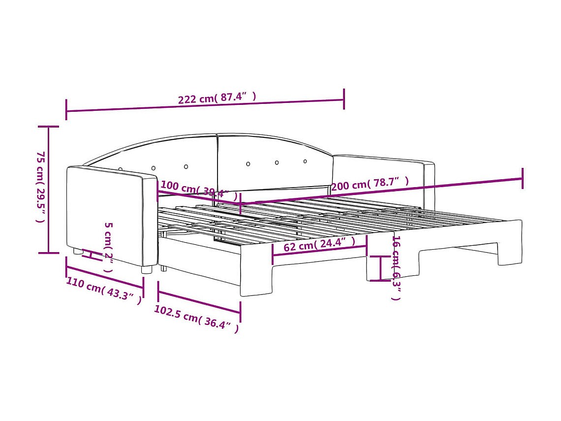 Dagbed met onderschuifbed zonder matras donkergrijs 100x200 cm