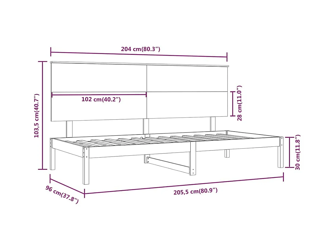 Dagbed zonder matras 90x200 cm massief grenenhout