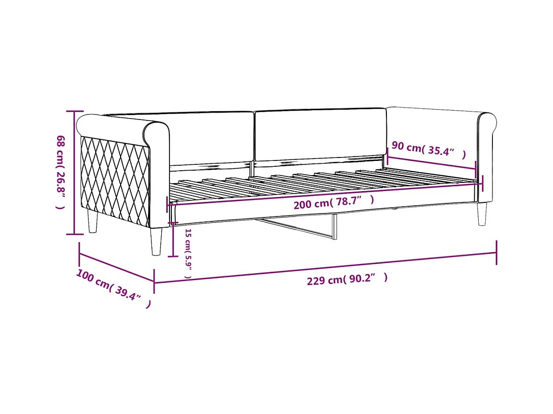 Dagbed met donkergrijs fluwelen matras 90x200 cm