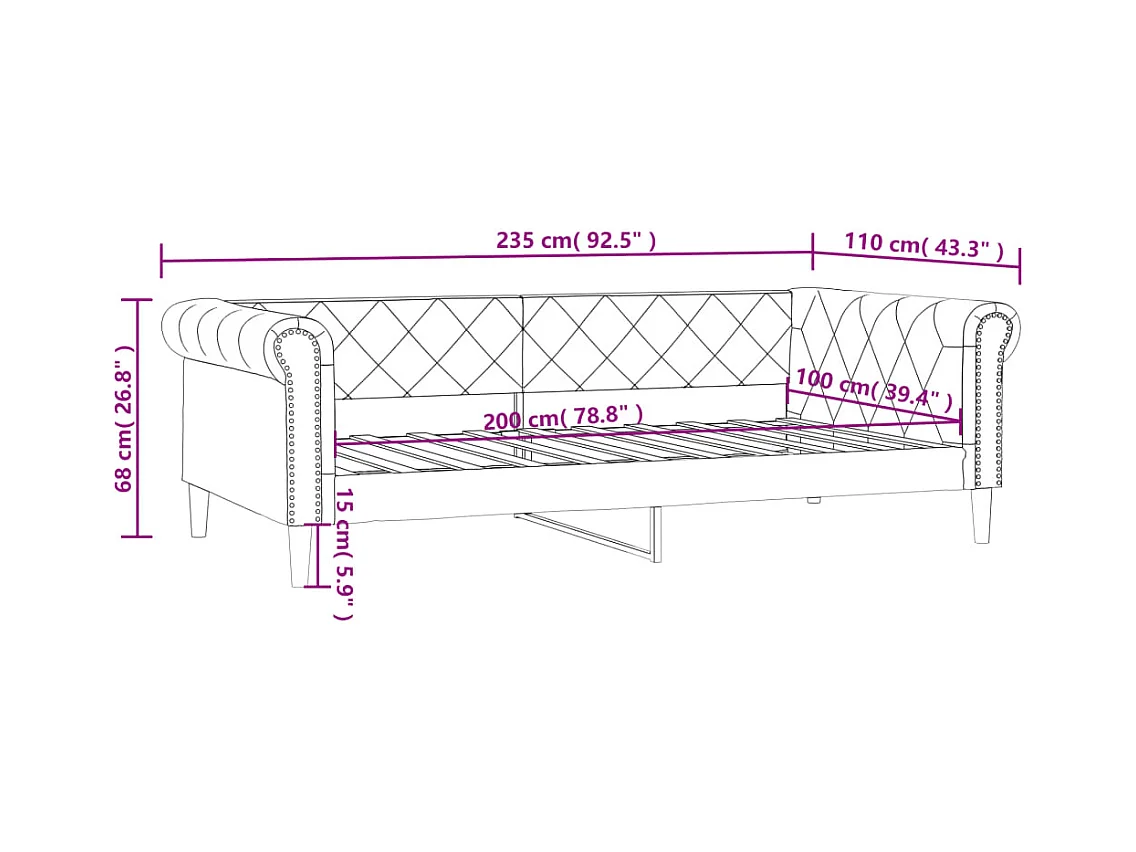 Dagbed met zwarte fluwelen matras van 100x200 cm