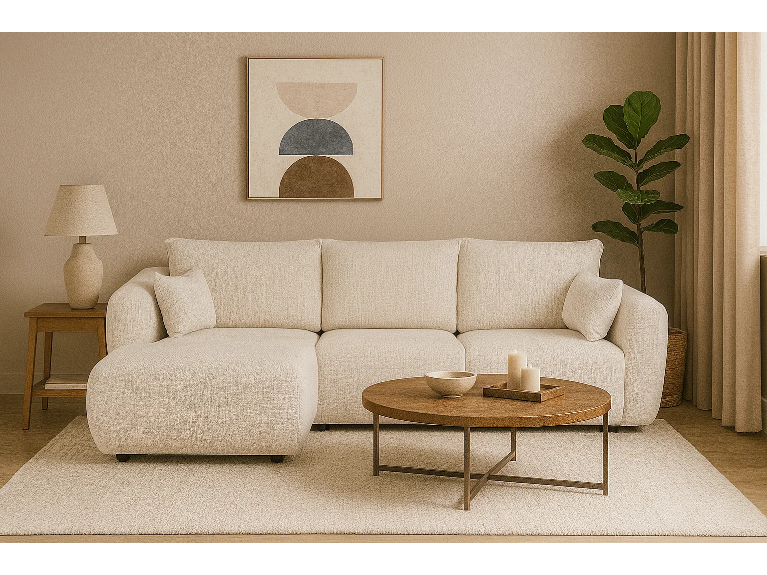 DALLAS – Hoekbank met slaapfunctie links 255x165 cm, stof Bello 5 crème
