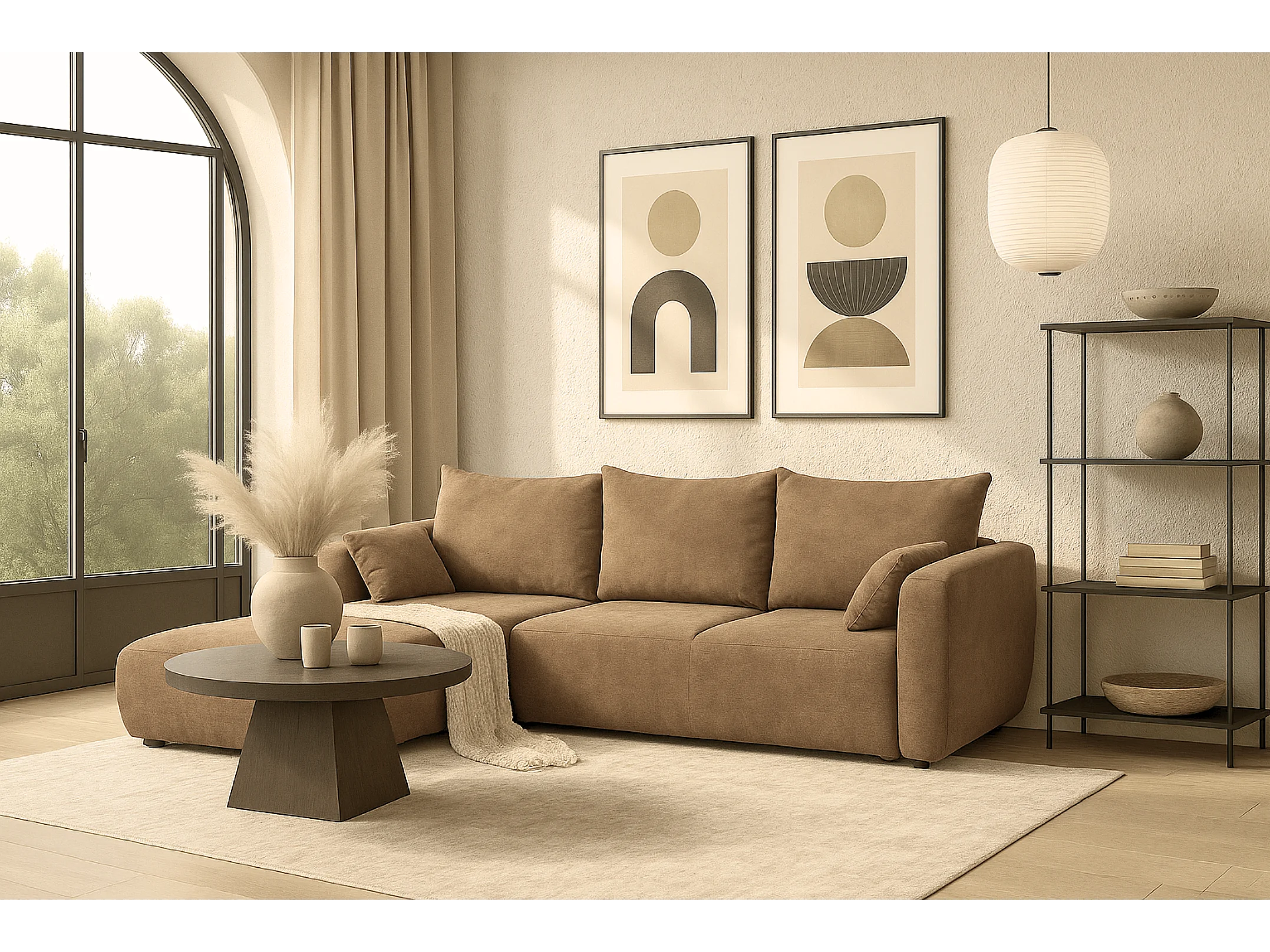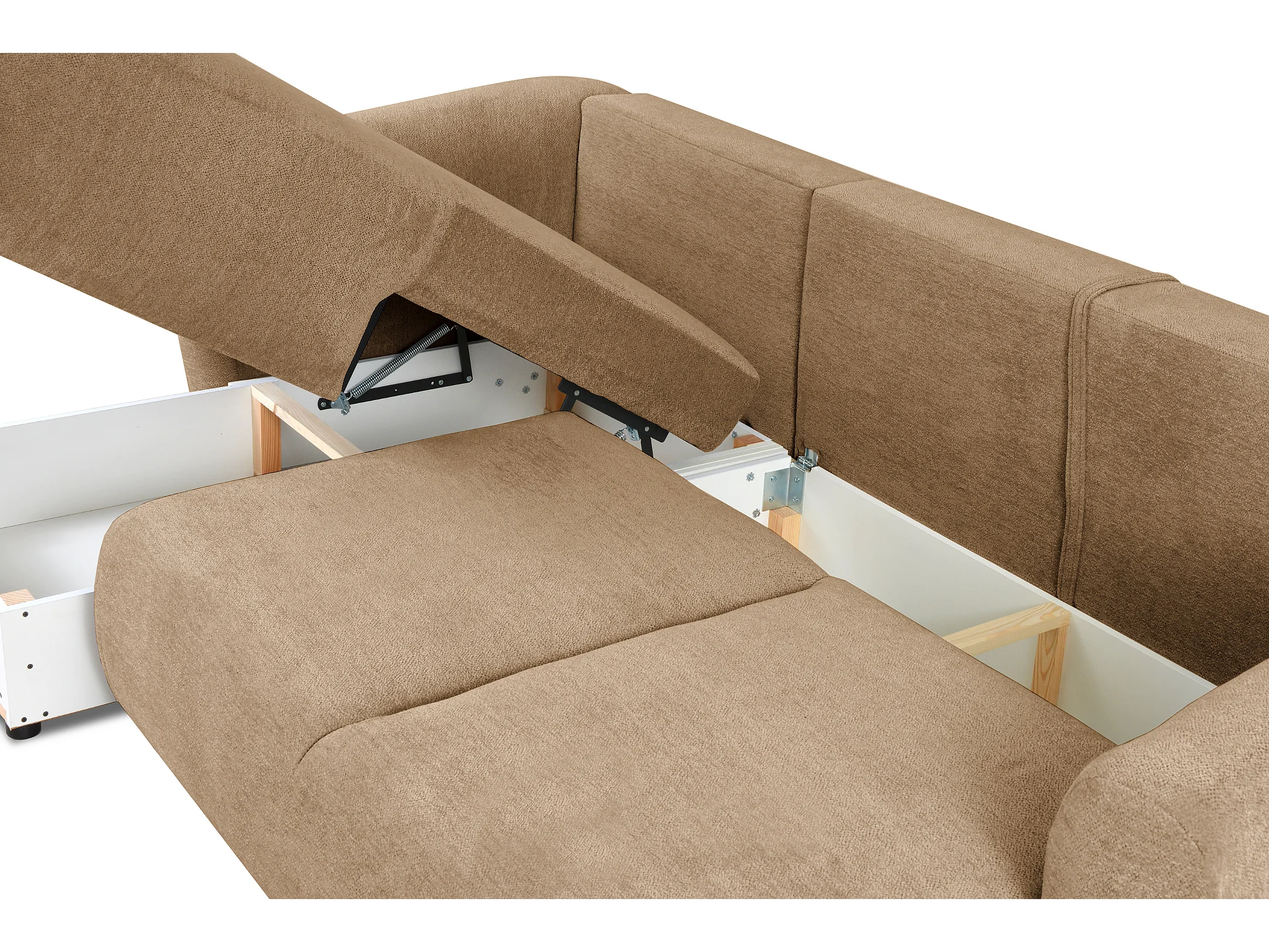 DALLAS – Hoekbank met slaapfunctie links 255x165 cm, stof Raven 34 lichtbriun