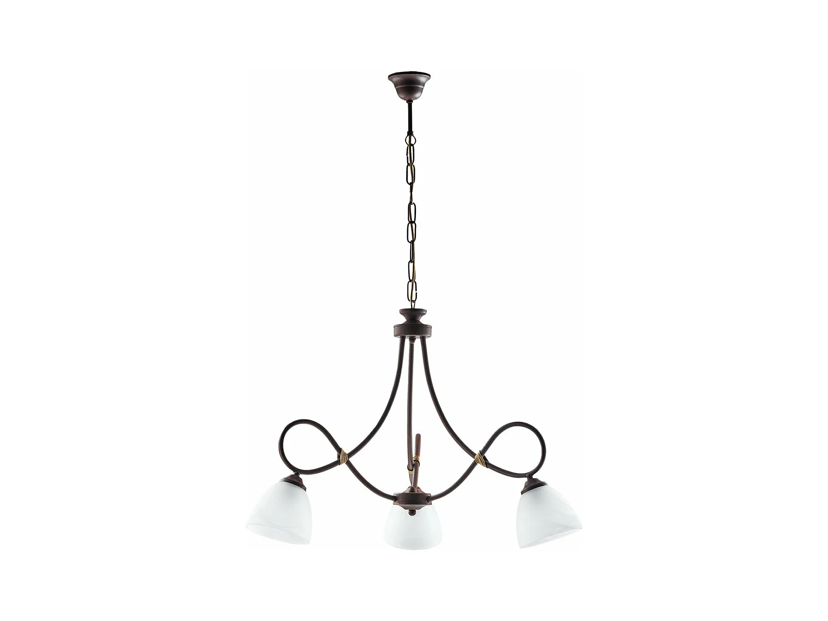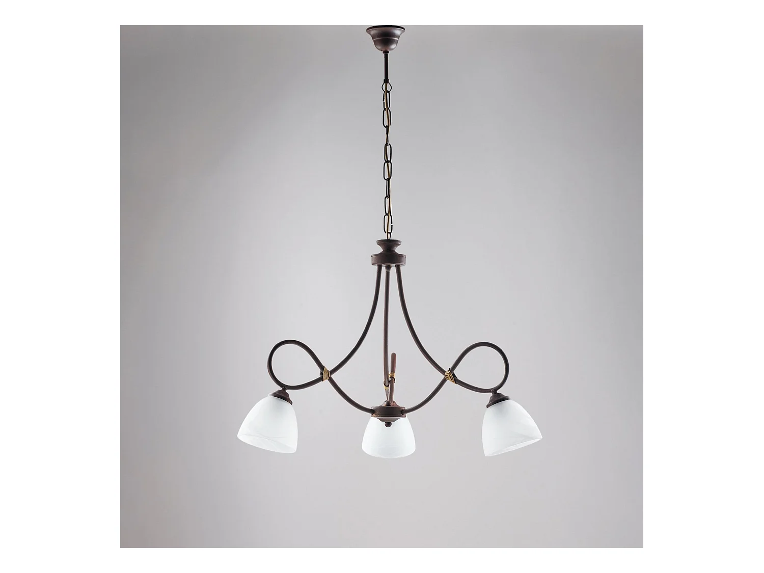 Lustre Dallas noir, effet rouille et or antique, verre albâtre d.13, 3 lumières idéal pour déco industrielle
