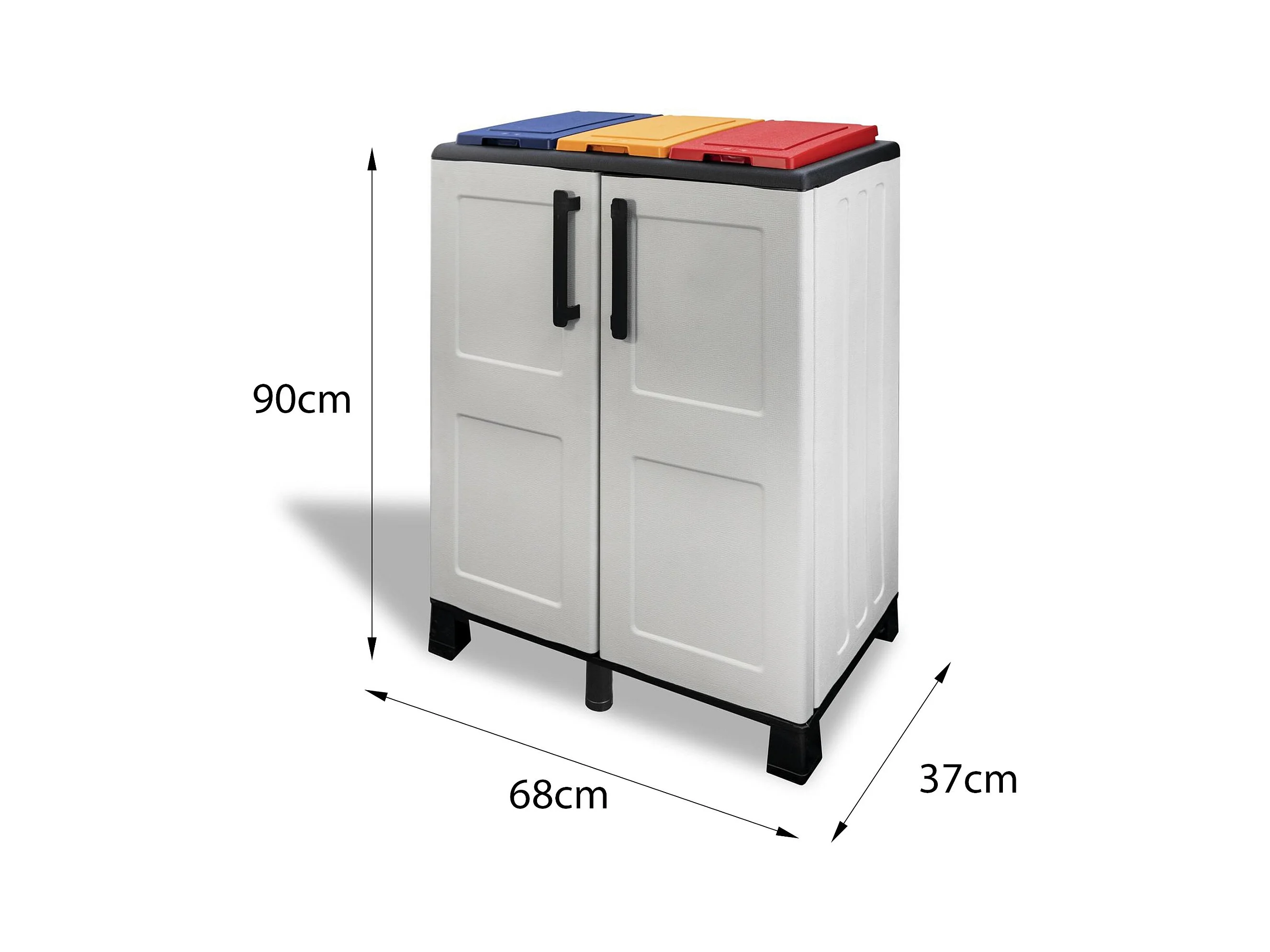 Dassennat vuilnisbak, Vuilnisbak, 2-deurs prullenbak, 100% Made in Italy, 68x37h90 cm, Lichtgrijs en Veelkleurig