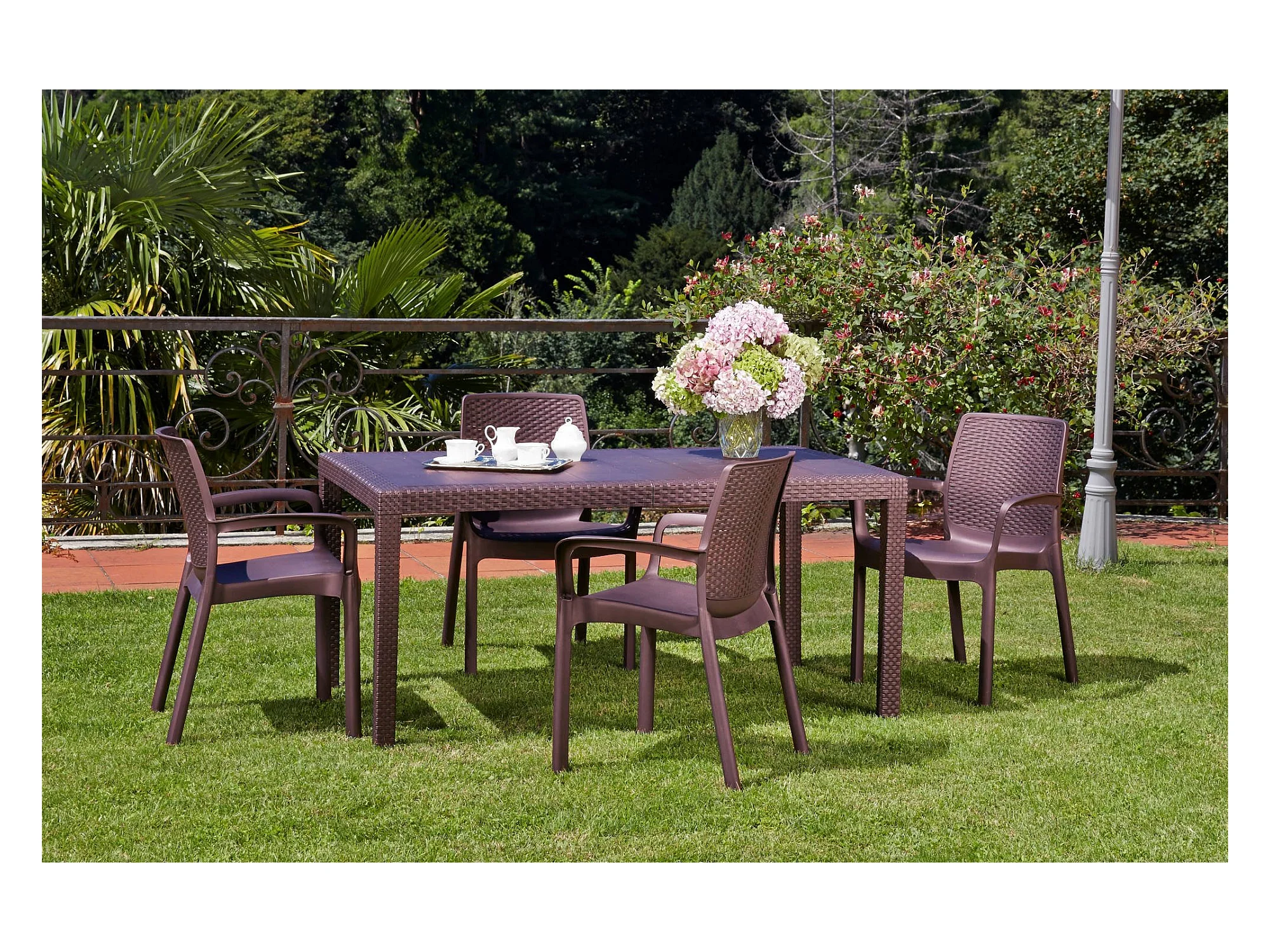Marte buitentafel, Vaste vierkante tafel, Multifunctionele tuintafel met rotaneffect, 100% Made in Italy, 80x80h74 cm, Bruin